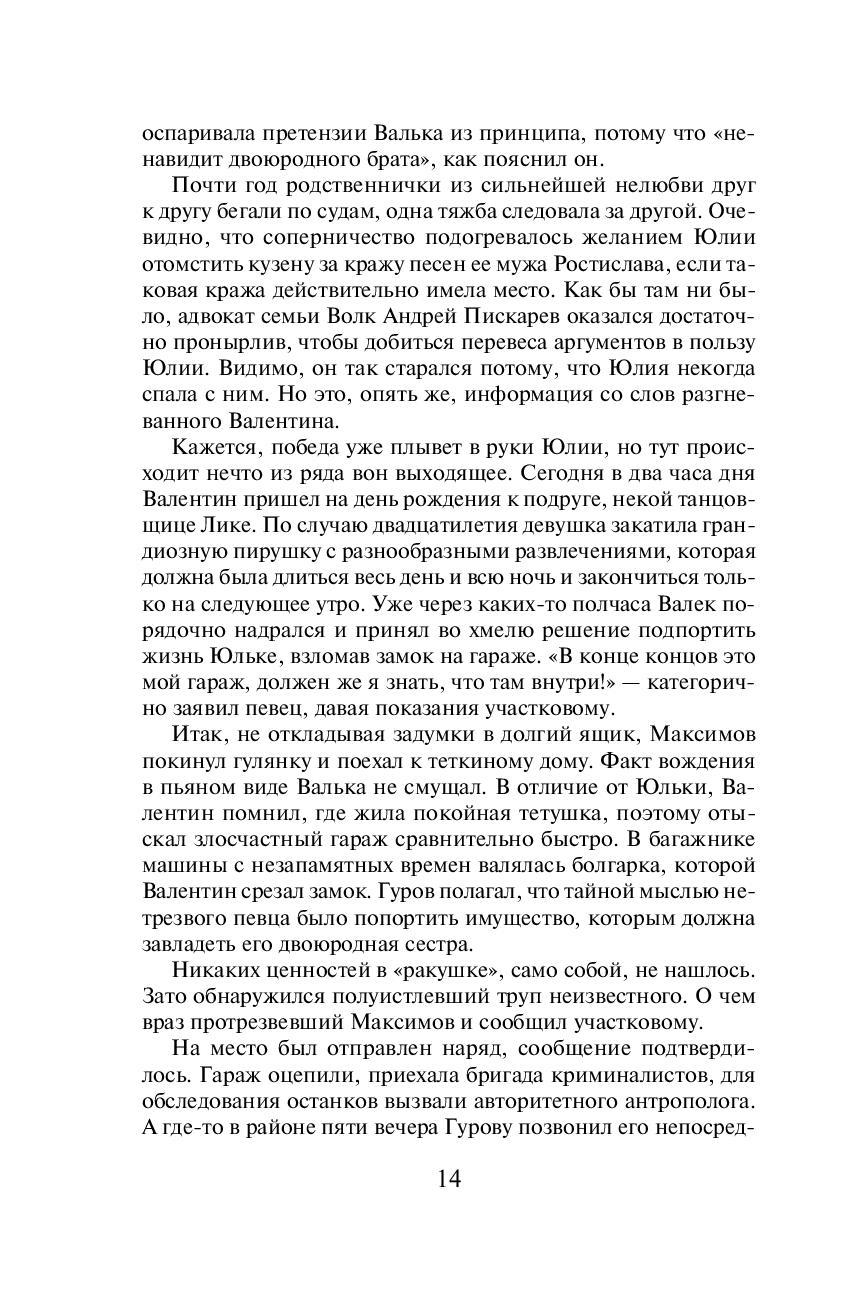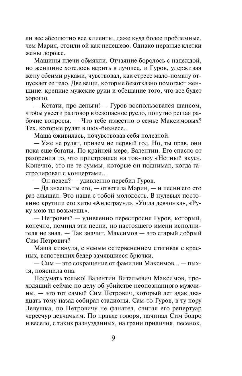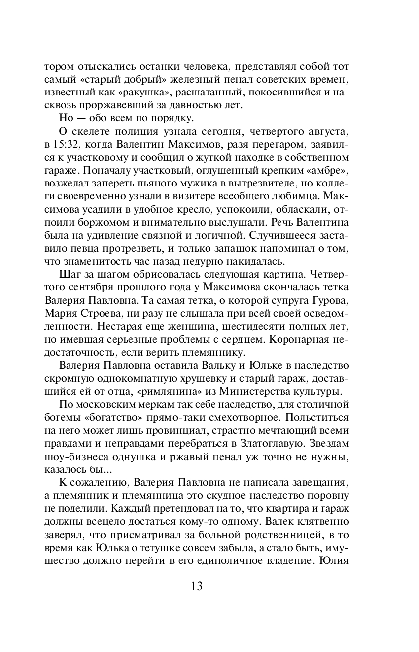 Умирает пожилая родственница известных шоуменов Максимовых. "Звездные" племянники покойной Валентин и Юлия тут же начинают тяжбу за ее наследство – старую хрущевку и ржавый гараж. Именно в гараже, куда уже много лет никто не заходил, Валентин находит полуистлевший труп мужчины… Полковники МВД Гуров и Крячко устанавливают, что убитый – это некий Денис Немков, специалист по проведению эстрадных тусовок, некоторое время назад пропавший с большой суммой чужих денег. Очевидно, расплата все-таки настигла вора. Сыщики пытаются установить потенциальных мстителей, еще не зная, что в этой жуткой истории деньги – не самое главное…