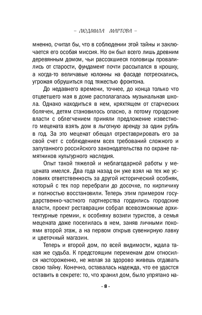 Реставратор Елена Беседина предвкушала новую интересную работу по восстановлению старинного особняка в самом центре города по заказу известного мецената Петра Беспалова. Но когда все уже было согласовано, его убили в этом самом доме! Обнаружившая тело Лена была потрясена, только знакомство с руководителем строительной фирмы Дмитрием Макаровым помогло ей справиться с этой ужасной ситуацией. Вдова Беспалова решила не сворачивать проект в память о муже, и Елена вновь оказалась в злосчастном доме. Что-то не давало ей покоя, заставляя все внимательнее осматривать сохранившиеся детали, особенно старинные печи с барельефами…