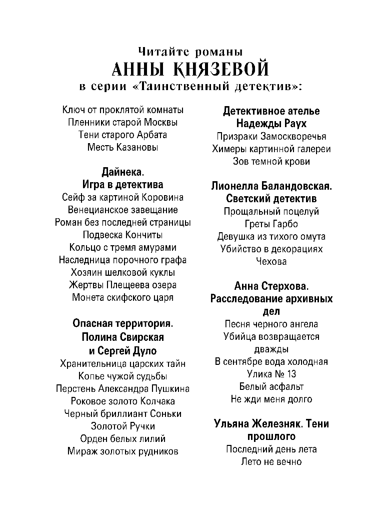 | Серия | Таинственный детектив Анны Князевой |