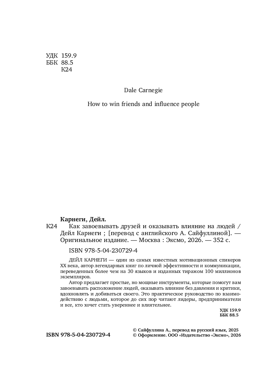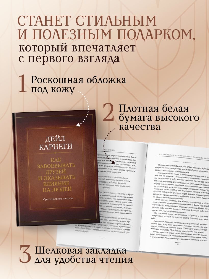 Автор предлагает простые, но мощные инструменты, которые помогут вам завоевывать расположение людей, оказывать влияние без давления и критики, вдохновлять и добиваться своего. Это практическое руководство по взаимодействию с людьми, которое до сих пор читают лидеры, предприниматели и все, кто хочет стать увереннее и влиятельнее.