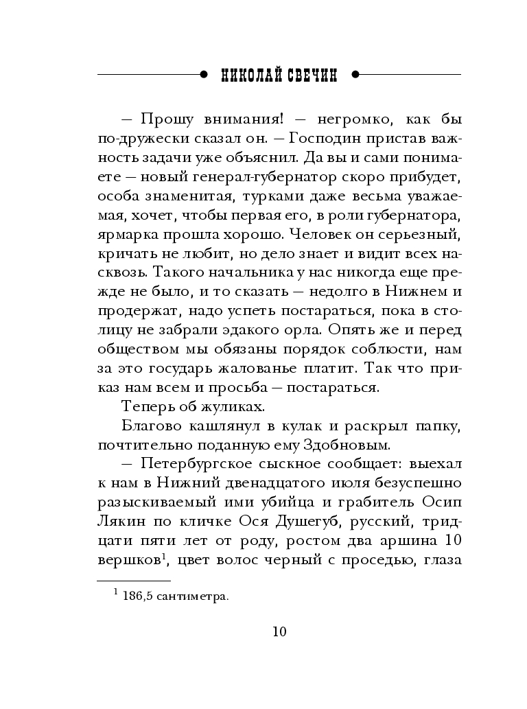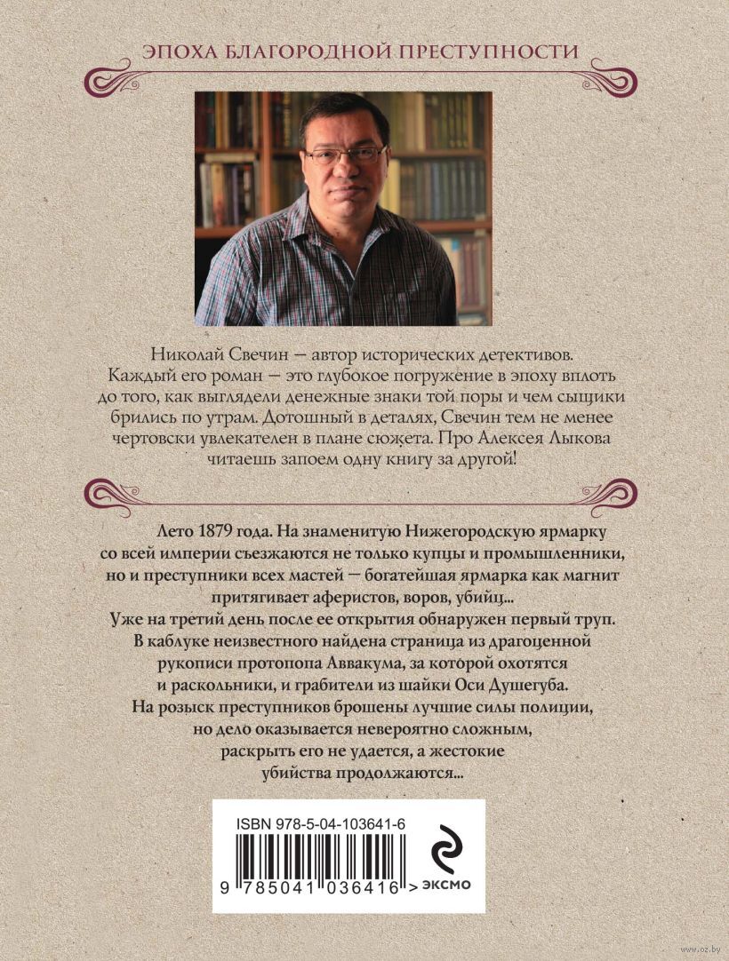 Лето 1879 года. На знаменитую Нижегородскую ярмарку со всех концов Российской Империи съезжаются не только купцы и промышленники, но и преступники всех мастей – богатейшая ярмарка как магнит притягивает аферистов, воров, убийц... Уже за день до её открытия обнаружен первый труп. В каблуке неизвестного найдена страница из драгоценной рукописи протопопа Аввакума, за которой охотятся и раскольники, и грабители из шайки Оси Душегуба. На розыск преступников брошены лучшие силы полиции, но дело оказывается невероятно сложным, раскрыть его не удаётся, а жестокие убийства продолжаются...