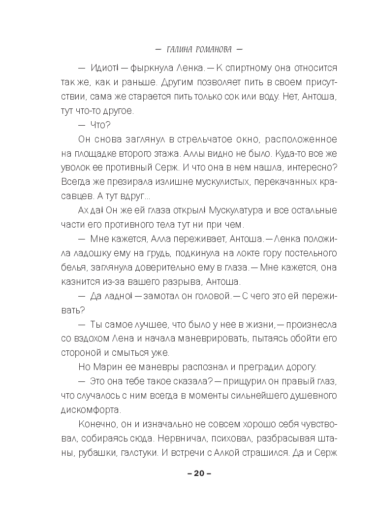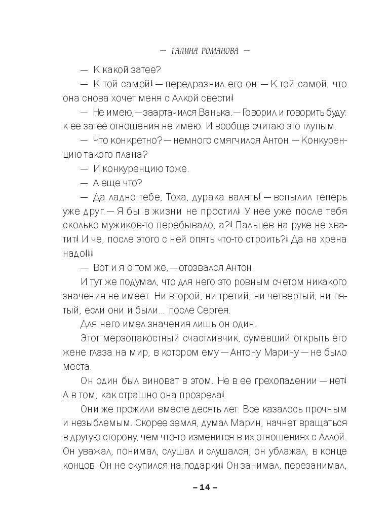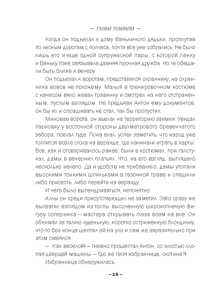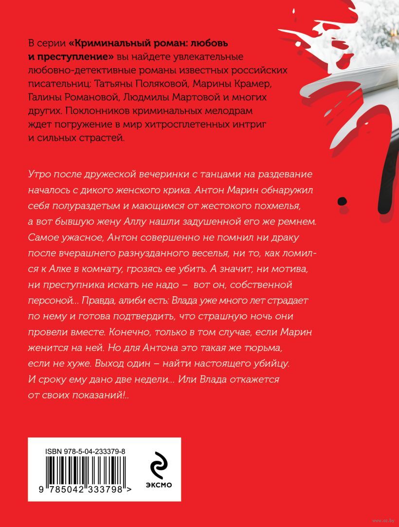 Утро после дружеской вечеринки с танцами на раздевание началось с дикого женского крика. Антон Марин обнаружил себя полураздетым и мающимся от жестокого похмелья, а вот бывшую жену Аллу нашли задушенной его же ремнем. Самое ужасное, Антон совершенно не помнил ни драку после вчерашнего разнузданного веселья, ни то, как ломился к Алке в комнату, грозясь ее убить. А значит ни мотива, ни преступника искать не надо – вот он, собственной персоной… Правда, алиби есть: Влада уже много лет страдает по нему и готова подтвердить, что страшную ночь они провели вместе. Конечно только в том случае, если Марин женится на ней. Но для Антона это такая же тюрьма, если не хуже. Выход один – найти настоящего убийцу. И сроку ему дано две недели… Или Влада откажется от своих показаний!..