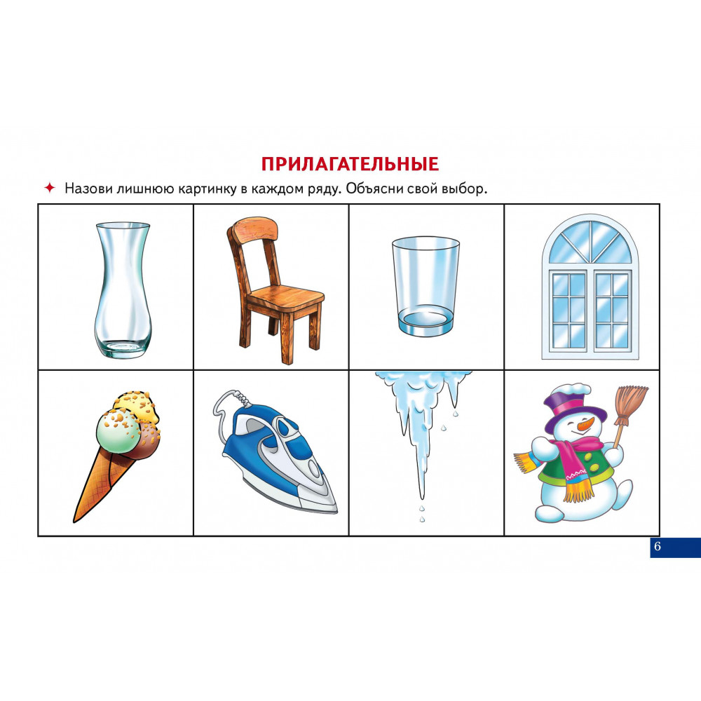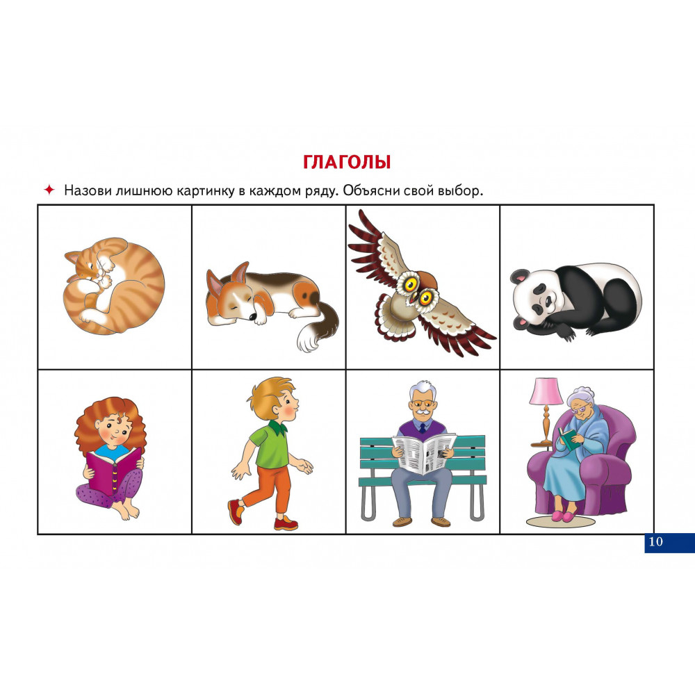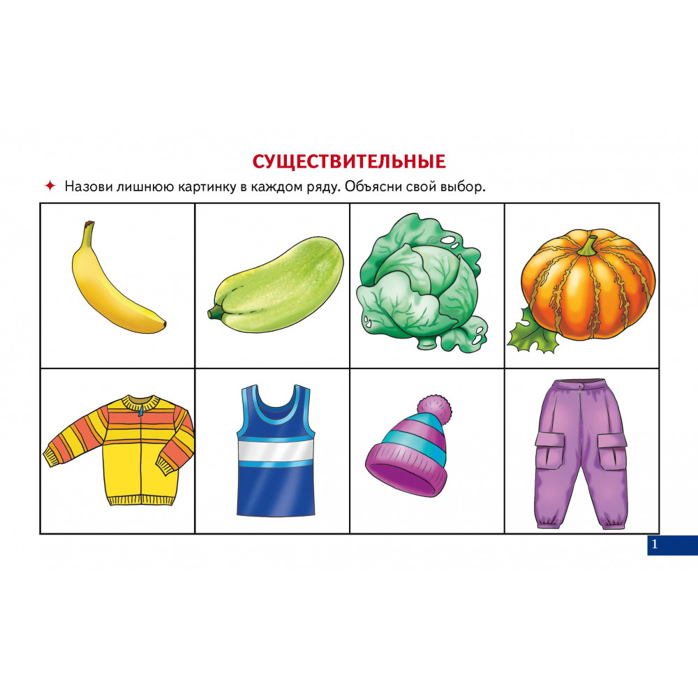 В данном наборе карточек ребенку предстоит научиться находить лишнюю картинку из четырех предложенных и объяснять свой выбор. Таким образом ребенок учится классифицировать, сравнивать, обобщать, находить причинно-следственные связи. Развивается его зрительное восприятие, внимание, а также словесно-логическое мышление.