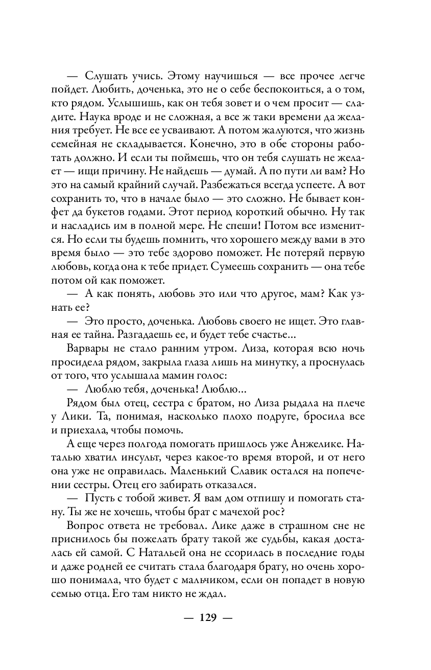 На страницах переплетены истории девочек, девушек и женщин разных поколений. Кто-то слишком рано взрослеет, кто-то жертвует собой ради близких, кто-то теряет любовь, а кто-то неожиданно находит опору там, где не ожидалось. Но неизменно одно: в каждом предложении прослеживается ежедневная, незаметная работа женской души: пережить, выстоять, не ожесточиться и сохранить в себе человечность.