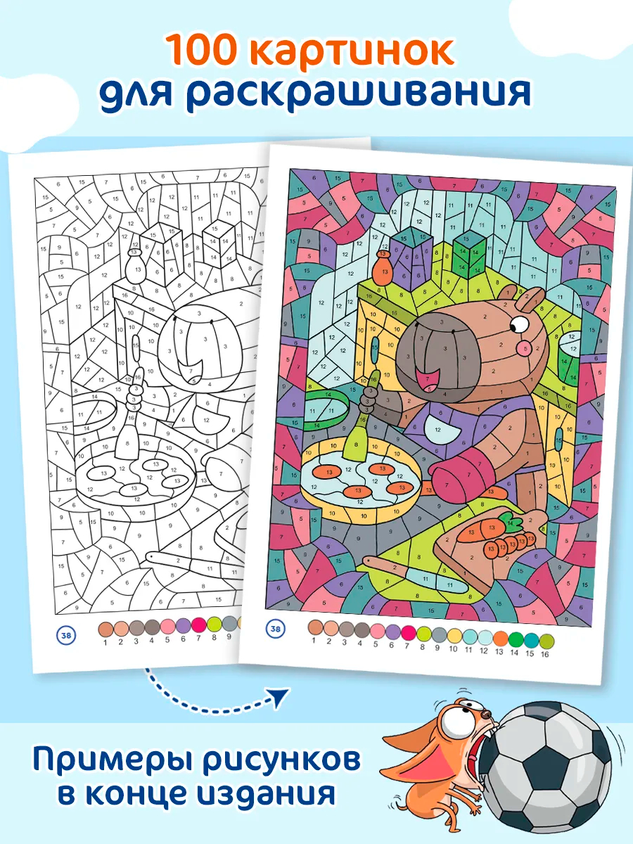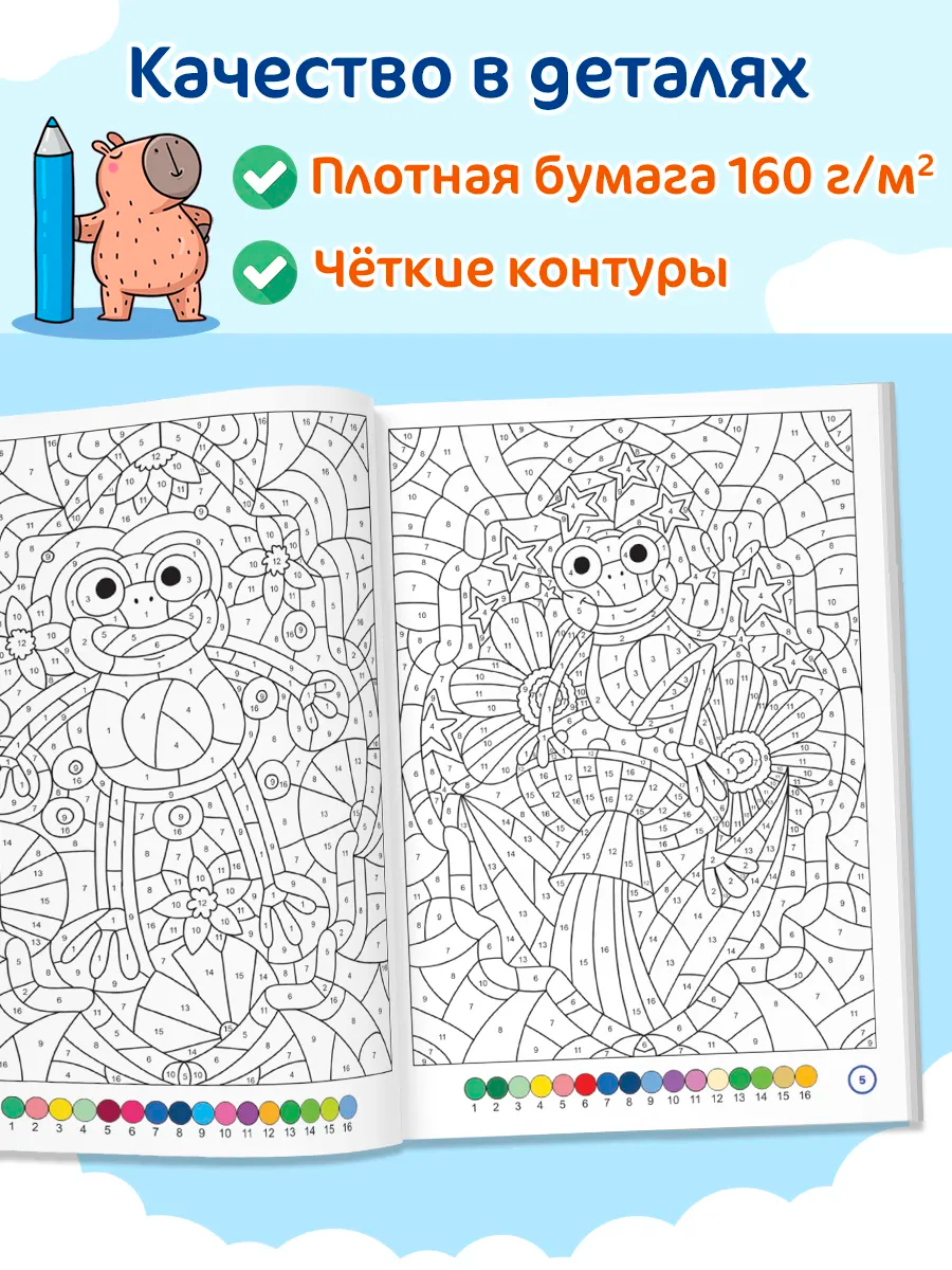 Формат А4, обложка с глянцевой ламинацией, блок состоит из 64 листов с двусторонней цветной печатью на плотной белоснежной бумаге 160 грамм, 100 тематических сюжетов, а так же ответы в цвете.