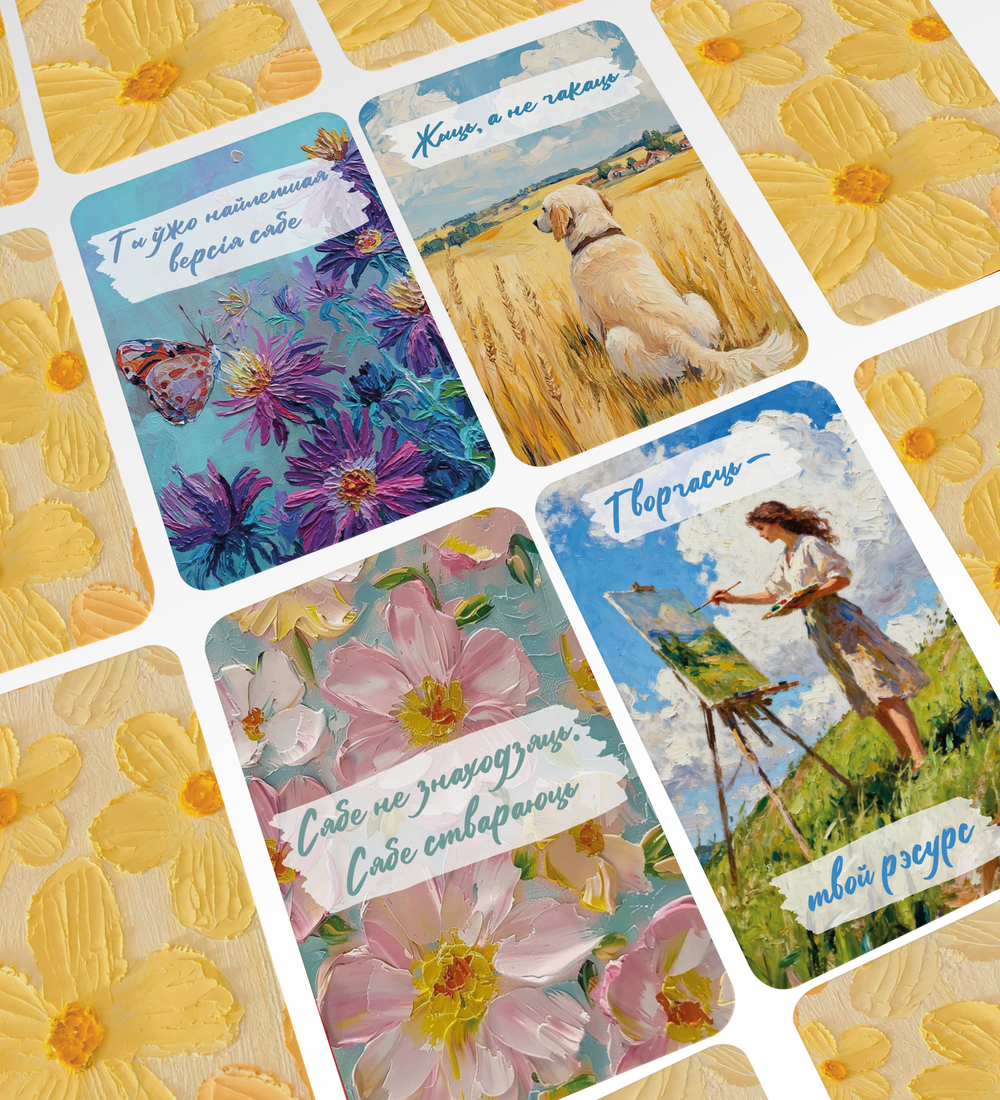 Унікальны набор матывацыйных картак стане тваім верным спадарожнікам на шляху да пазітыўнага мыслення і ўнутранай гармоніі.