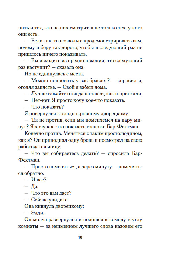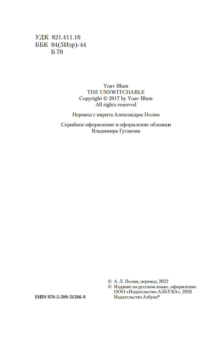 «Я вынужден смотреть на все только своими глазами». Его зовут Дан Арбель, и он живет в мире, который никогда не будет прежним. Гениальное изобретение изменило этот мир навсегда. Ни один человек больше не привязан к своему телу. Простым нажатием кнопки он может оказаться в теле другого. Нет необходимости лететь в Таиланд – достаточно обменяться телами с тем, кто отдыхает на тайском пляже. Необязательно объяснять врачу свои симптомы: врач может на несколько секунд оказаться в вашем теле и узнать все, что нужно. Бесполезно тратить время на фитнес, куда удобнее одолжить свое тело тренеру. Мир никогда не будет прежним, однако Дана Арбеля это не касается. Он – единственный в мире человек, неспособный меняться телами. Что это – врожденный порок, божественное благословение или ужасное проклятие?