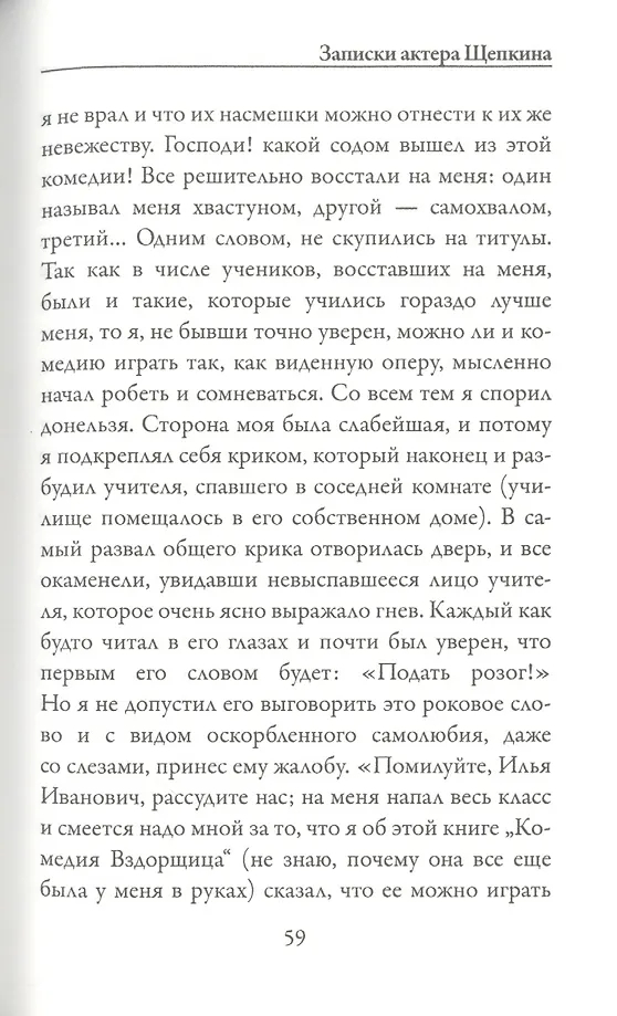 Михаил Семенович Щепкин (1788-1863) – великий актер и один из основоположников русской актерской школы. Его биография поражает: крепостной из Курской губернии, который будет выступать в императорском театре, дружить с Пушкиным, Гоголем, Тургеневым, Некрасовым и другими мэтрами отечественной литературы. Однако не меньше поражает его автобиография. Остроумной, живой и смешной истории жизни гения театра не было бы без стараний Александра Пушкина. 17 мая 1836 года поэт подарил актеру тетрадь, озаглавил ее "Записки актера Щепкина" и сам же вписал первые строки: "Я родился в Курской губернии Обоянского уезда в селе Красном, что на речке Пенке". Теперь мы можем достоверно, от первого лица, узнать, что же было дальше: о родителях, помещиках, выкупе, городах и глубинках, а главное – о секретах актерского мастерства.