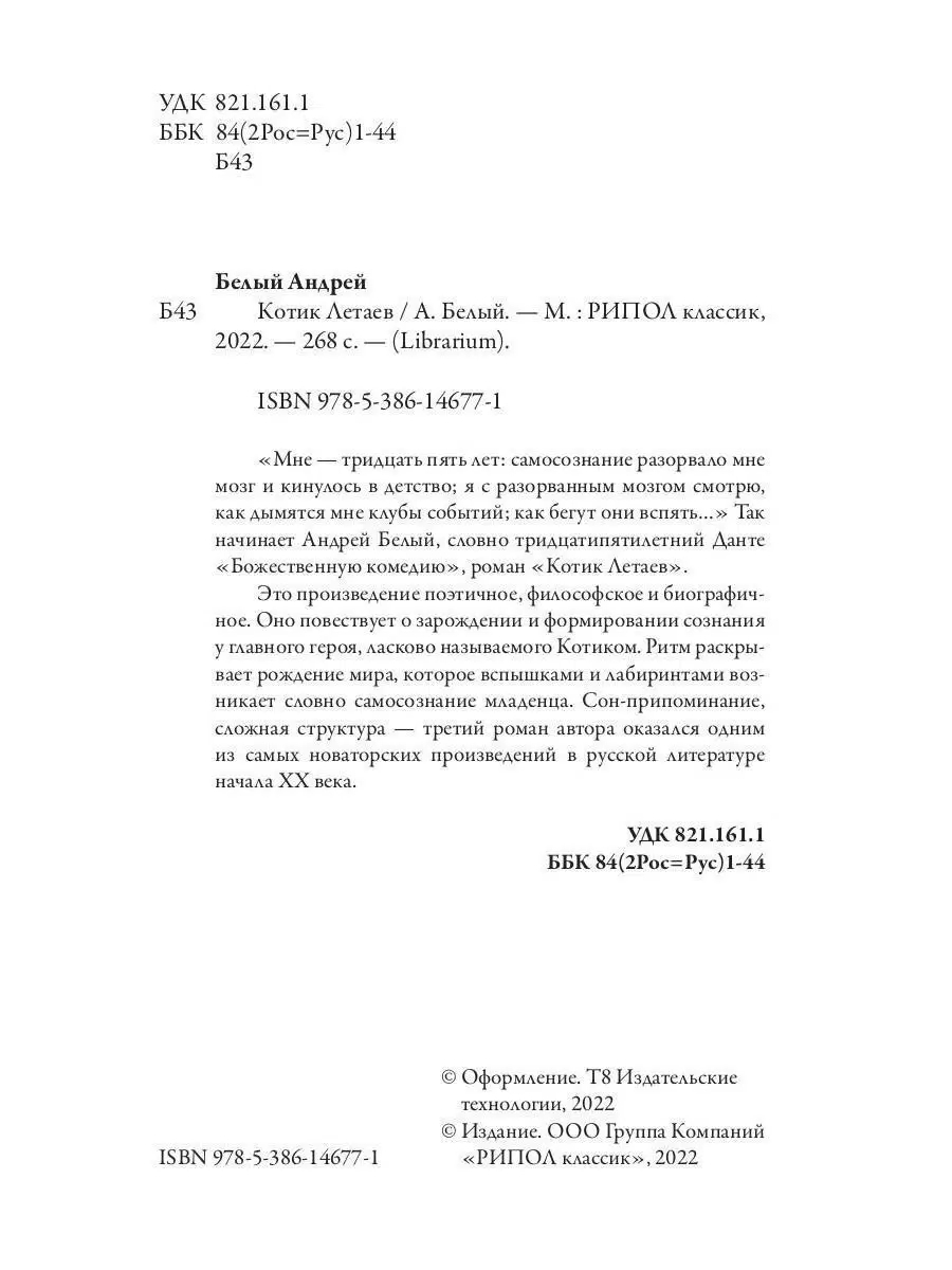 Это произведение поэтичное, философское и биографичное. Оно повествует о зарождении и формировании сознания у главного героя, ласково называемого Котиком. Ритм раскрывает рождение мира, которое вспышками и лабиринтами возникает словно самосознание младенца. Сон-припоминание, сложная структура – третий роман автора оказался одним из самых новаторских произведений в русской литературе начала XX века.