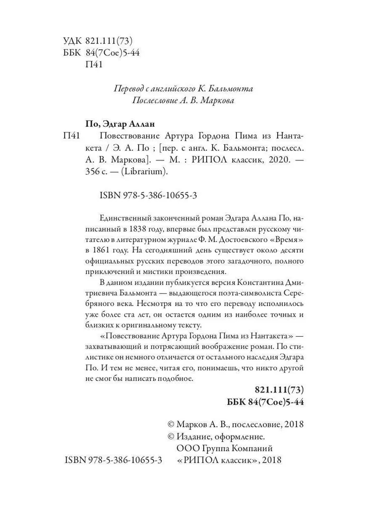 | Название в оригинале | The Narrative of Arthur Gordon Pym of Nantucket |