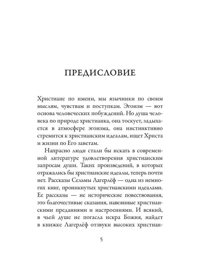 Сборник Сельмы Лагерлёф, обладательницы Нобелевской премии, "Сказания о Христе" – признанная жемчужина в коллекции изданий для семейного чтения. Это удивительные сказки, в которых есть место вымыслу, но вымыслу, исполненному благоговения и направленному на то, чтобы возбудить в сердцах читателей и слушателей этих историй горячую любовь и интерес к христианству, научить милосердию и состраданию.