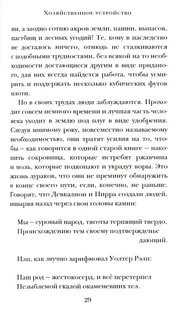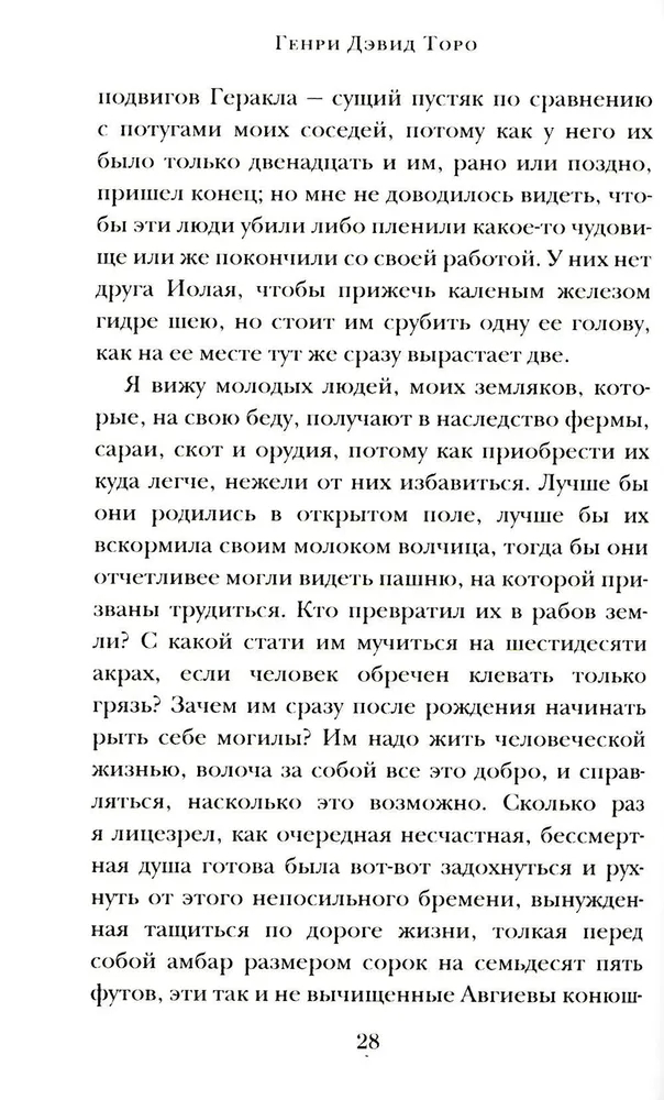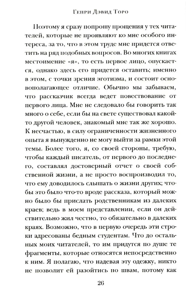 Генри Торо, американский писатель, "инспектор ливней и снежных бурь", в двадцать восемь лет удалился от общества и, построив себе дом в лесу на берегу Уолденского пруда, поселился в нем на два года. Так появилась одна из самых удивительных книг за всю историю литературы – "Уолден, или Жизнь в лесу". Рассказ Торо о двух годах, проведенных наедине с природой, стал классикой американской литературы. Своей жизнью у озера Торо стремился показать современникам с их культом материального преуспевания, что хорошо и счастливо жить можно и вне общества, удовлетворяя все естественные потребности собственным трудом, Обществу потребления он противопоставил свободу от материальных забот, уединение, самодостаточность, созерцательность и близость к природе.