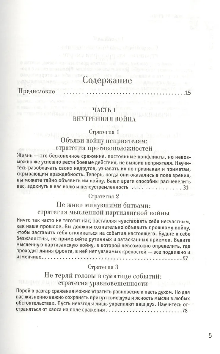 Война и способы ее ведения обладают непреклонной, неумолимой логикой: если вы чего-то хотите или к чему-то стремитесь, то должны быть готовы сразиться за это. Владение стратегическим искусством войны сделает вашу жизнь более спокойной, мирной и плодотворной. Ведь вы будете знать, каковы правила игры, и сумеете одерживать победы, не прибегая к насилию.