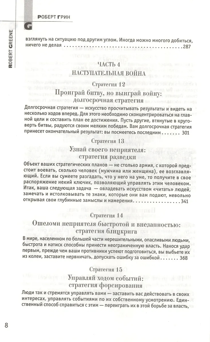 "33 стратегии войны" от Роберта Грина, искушенного знатока человеческой психологии и автора мирового бестселлера "48 законов власти", помогут вам найти выход из любого сложного положения и принять правильное решение. Войну, как и любой другой конфликт, ведут, и выигрывают благодаря стратегическому искусству.