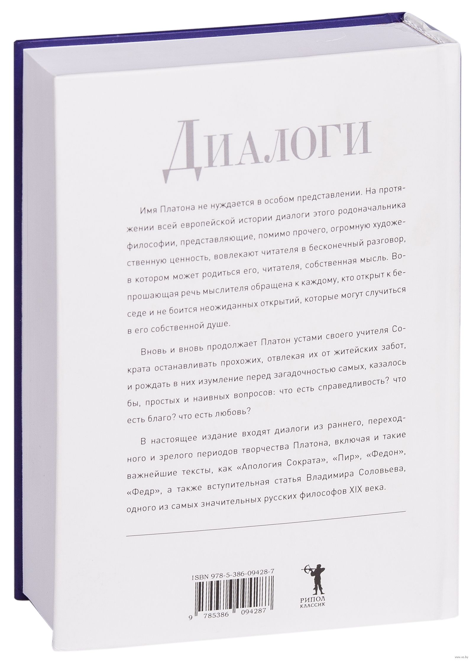 В настоящее издание входят диалоги из раннего, переходного и зрелого периодов творчества Платона, включая и такие важнейшие тексты, как "Апология Сократа", "Пир", "Федон", "Федр", а также вступительная статья Владимира Соловьева, одного из самых значительных русских философов XIX века.