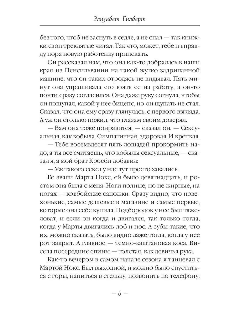 Перед вами сборник увлекательнейших рассказов, полных трогательных и искренних событий, переживаний и мыслей, знакомых каждой женщине. Элизабет Гилберт остается верной себе, с присущим ей жизнелюбием и мудростью, она показывает нам прекрасных героев. Каждый из которых находятся в вечном путешествии и вечном поиске – поиске себя и своего места в этом мире.
