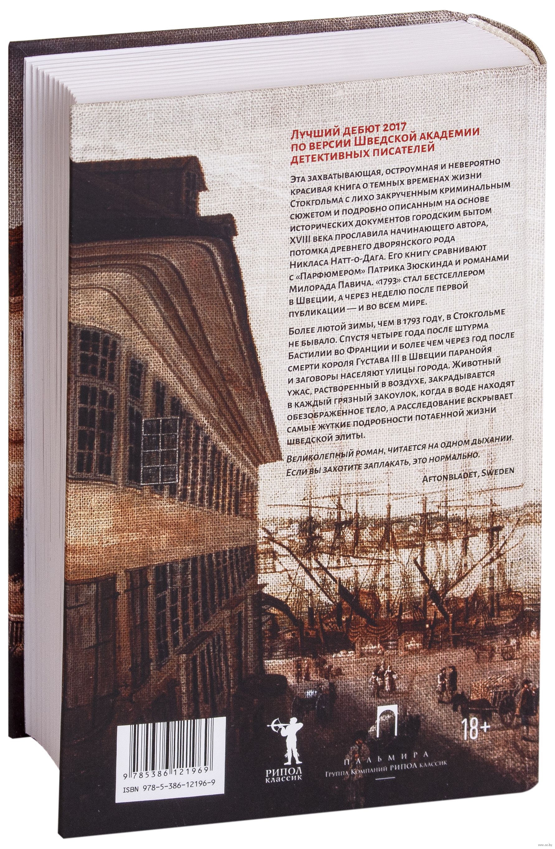 Эта захватывающая, остроумная и невероятно красивая книга о темных временах жизни Стокгольма с лихо закрученным криминальным сюжетом и подробно описанным на основе исторических документов городским бытом XIII века прославила начинающего автора, потомка древнего дворянского рода Никласа Натт-о-Дага. Его книгу сравнивают с "Парфюмером" Патрика Зюскинда и романами Милорада Павича. "1793" стал бестселлером в Швеции, а через неделю после первой публикации – и во всем мире.
