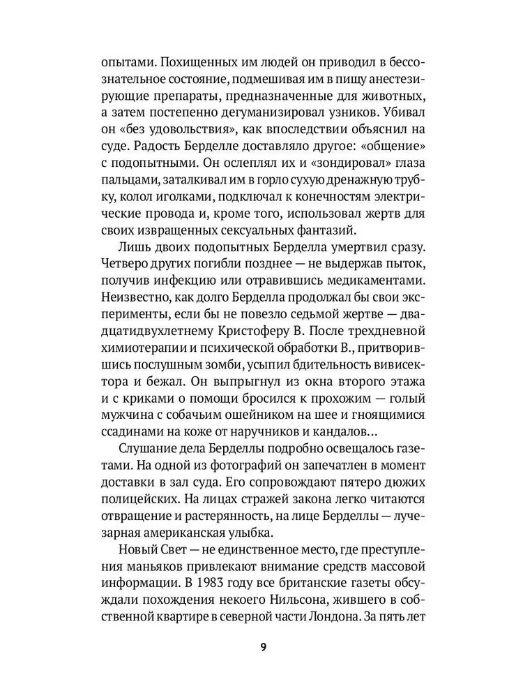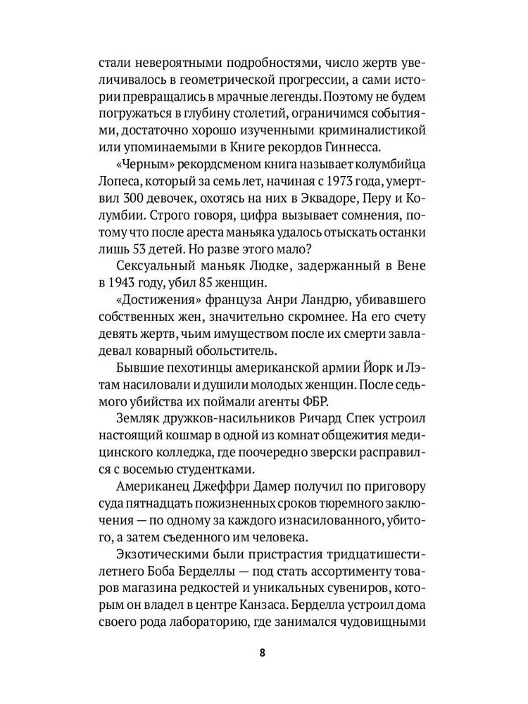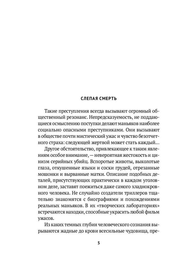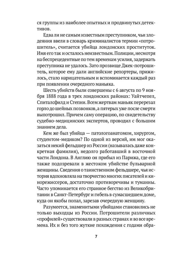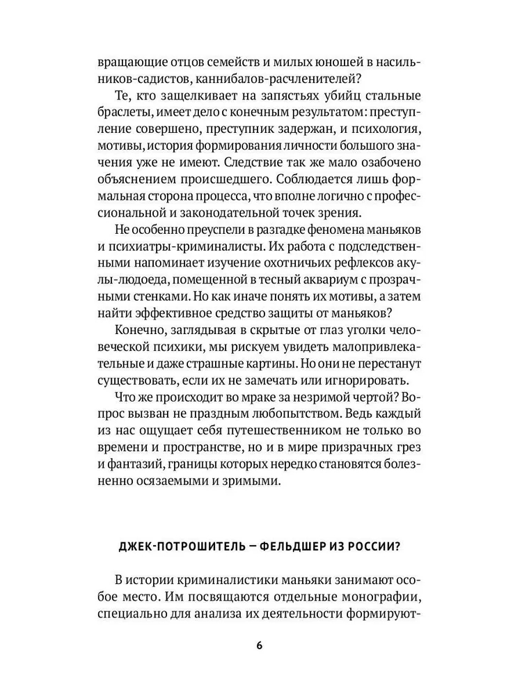 Потрясающая книга о серийниках времён СССР. Следует отметить наличие неприятных описаний и фотографий с мест преступлений, а они действительно ужасны! Но если вы увлекаетесь темой криминального мира, думаю, для вас это покажется вполне сносным. Здесь затронуты многие маньяки, среди которых есть и Чикатило, и Сливко, и Пичушкин. Уверяю вас, скучно не будет. Следует запастись терпением и крепкими нервами, но если вы этим не обладаете, возможно, стоит ещё раз подумать перед прочтением этой книги. Всё же это другая сторона, другой мир, который преисполнен жестокостью и хладнокровием на первый взгляд вполне обычных людей.