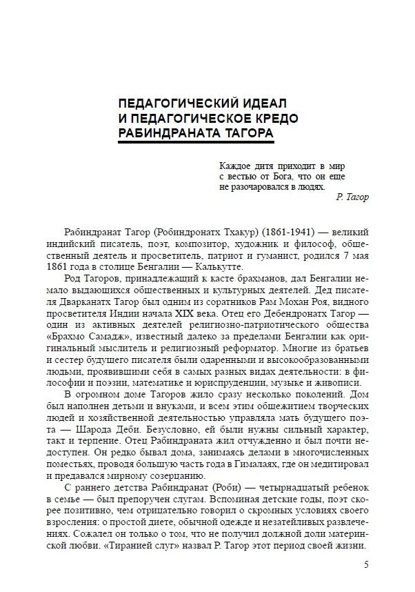 Тагор писал о том, как важно развивать у детей способности к самообразованию, вызывать интерес к учебе, строить отношения учителя и ученика на основе духовной близости.