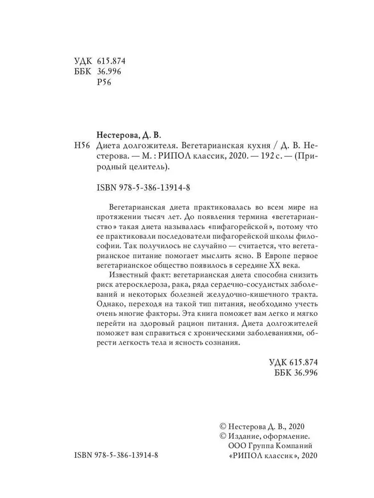 Известный факт: вегетарианская диета способна снизить риск атеросклероза, рака, ряда сердечно-сосудистых заболеваний и некоторых болезней желудочно-кишечного тракта. Однако, переходя на такой тип питания, необходимо учесть очень многие факторы. Эта книга поможет вам легко и мягко перейти на здоровый рацион питания. Диета долгожителей поможет вам справиться с хроническими заболеваниями, обрести легкость тела и ясность сознания.