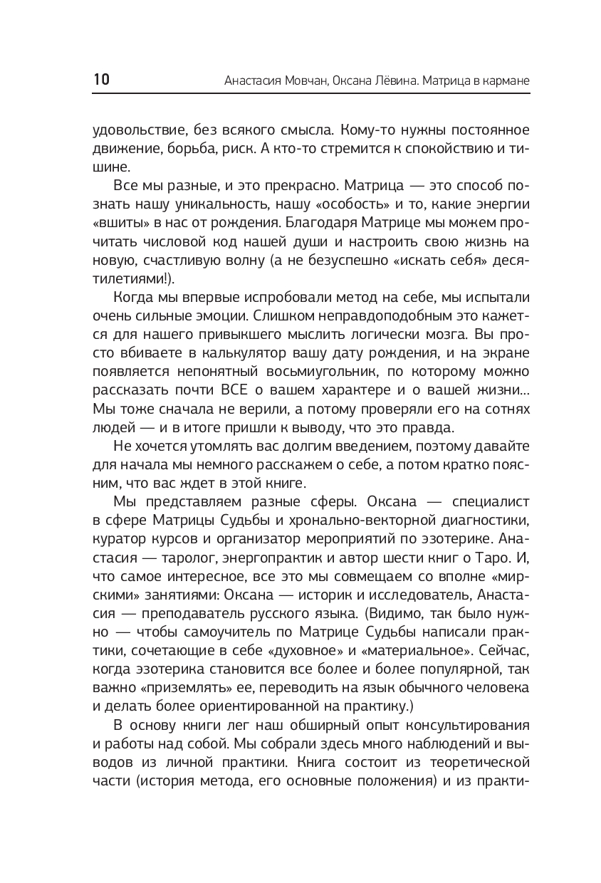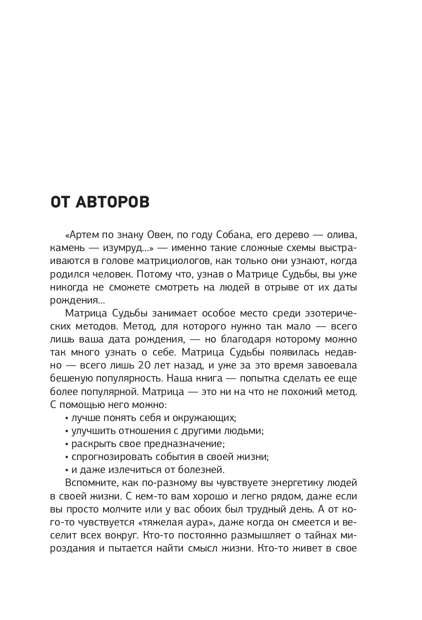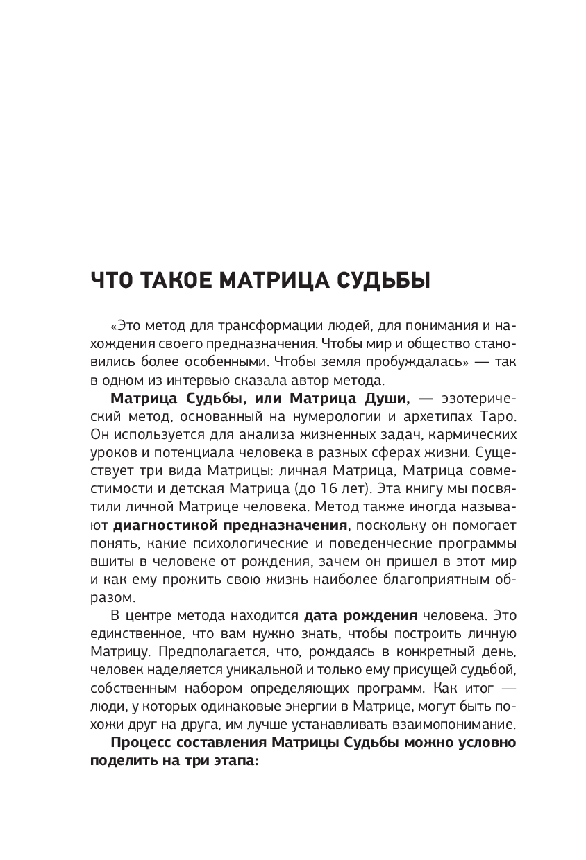 Авторы подготовили для вас упражнения, медитации и даже конкурс, в котором можно выиграть консультацию. А в самом конце издания ждет полезный бонус – три главы о консультировании клиентов, детской Матрице Судьбы и Матрице совместимости!