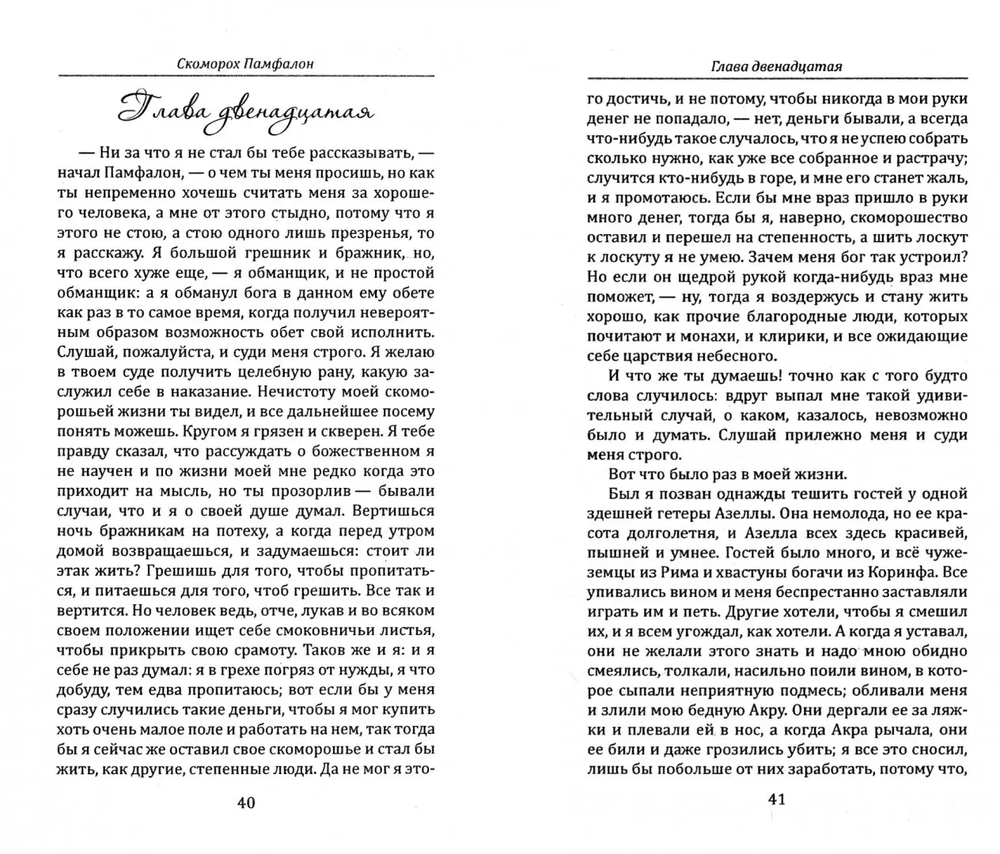 "Скоморох Памфалон" (произведение впервые опубликовано в журнале "Исторический вестник" в 1887 году) – это история поиска отшельником Ермием людей, которые "суть Богу угождающие и вечность улучившие". Глас свыше приводит его в Дамаск к скомороху Памфалону, человеку далеко не святому. Однако после того как тот рассказывает Ермию историю своей жизни, взгляды отшельника на то, что такое святость и служение ближнему радикально меняются.