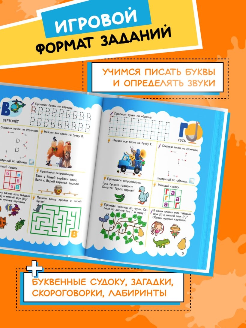 Кроме того, пособие содержит прописи для дошкольников, буквенные судоку, загадки, скороговорки, лабиринты, задания на развитие и тренировку воображения, моторики, логики, внимания и мышления. Занимаясь, ребенок будет активно готовиться к школе. Все, что для этого нужно – цветные карандаши и хорошее настроение!