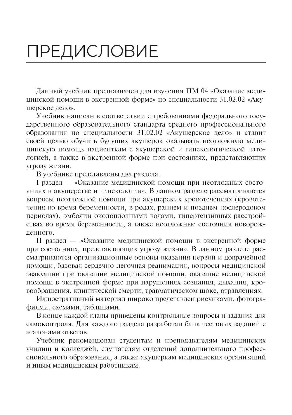 Учебник написан в соответствии с требованиями федерального государственного образовательного стандарта среднего профессионального образования по специальности 31.02.02 "Акушерское дело" и ставит своей целью обучить будущих акушерок оказывать неотложную медицинскую помощь пациенткам с акушерской и гинекологической патологией, а также в экстренной форме при состояниях, представляющих угрозу жизни. В учебнике два раздела: I раздел – "Оказание медицинской помощи при неотложных состояниях в акушерстве и гинекологии";