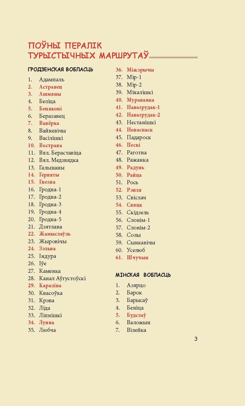 У сёмай кнізе, па Гродзенскай вобласці, прапаную наступныя турыстычныя маршруты: "Ашмяны", "Рэпля" і "Шчучын". У Гомельскай вобласці нас чакае турыстычны маршрут "Чачэрск". Два турыстычныя маршруты прапануе Мінская вобласць – гэта "Новы Свержань" і "Мядзел". На Віцебшчыне павандруем па маршрутах "Белая Царква" і "Смальяны". Два маршруты будуць у Брэсцкай вобласці: "Лунінец" і "Савейкі".