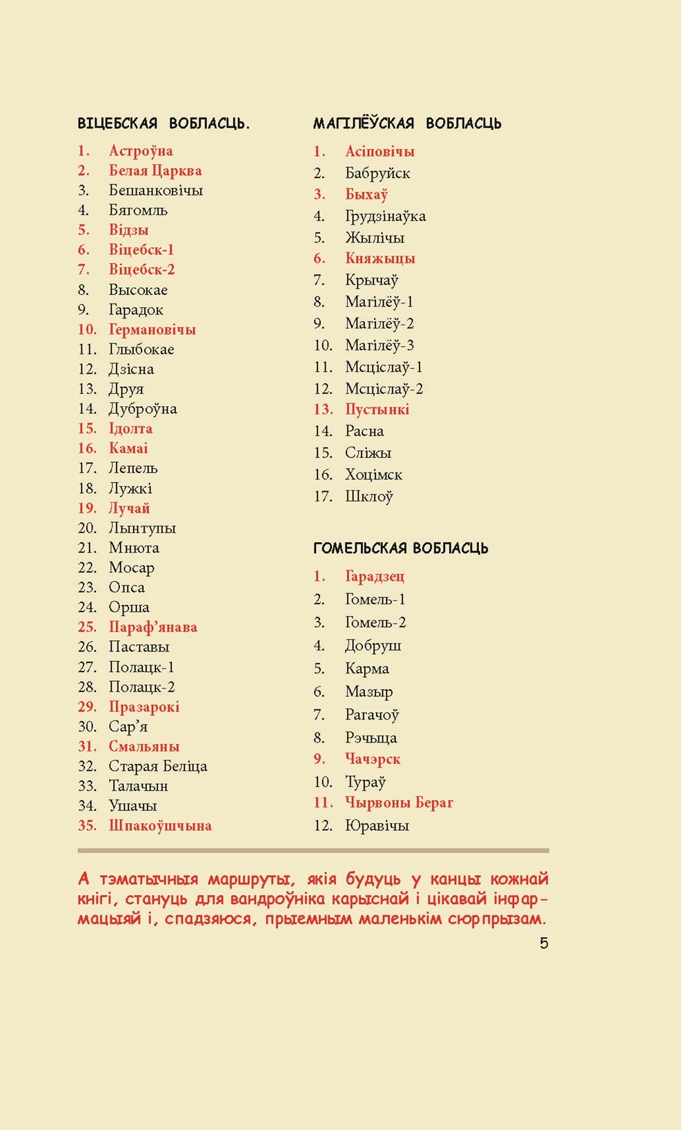 Перад чытачом вынік шматгадовых вандраванняў аўтара па абшарах нашай краіны, яго працы з даследчымі і архіўнымі матэрыяламі. У выніку з’явіўся аўтарскі праект для падарожнікаў, які змяшчае каля 10 тысяч архітэктурных і прыродных славутасцяў Беларусі.