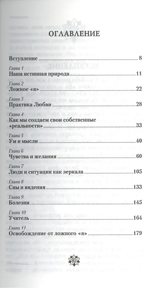 Вы научитесь, как устранять причины, вызывающие гнев, депрессию, болезни, как освободиться от различных желаний и обрести контроль над чувствами и умом. Вы сможете осознать, что тот мир, который вы считаете внешним и отдельным от себя, на самом деле – ваше отражение, зеркало, предназначенное указать вам путь к Богу. Вы откроете для себя, что все ваши успехи и неудачи, отношения с людьми, бедствия, желания, болезни, чувства, сложности – одним словом, весь опыт, через который вы проходите, становится для вас учителем любви.