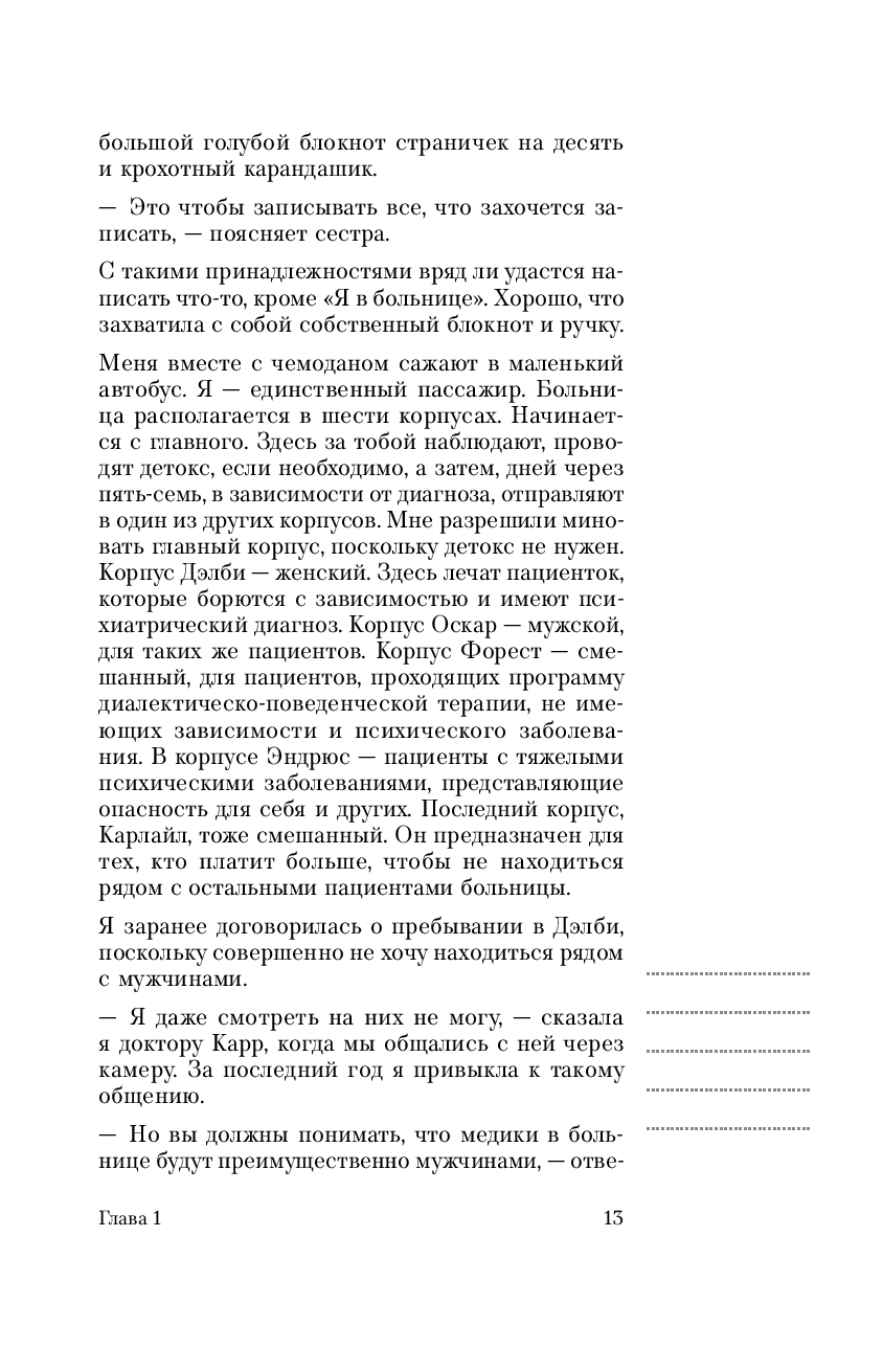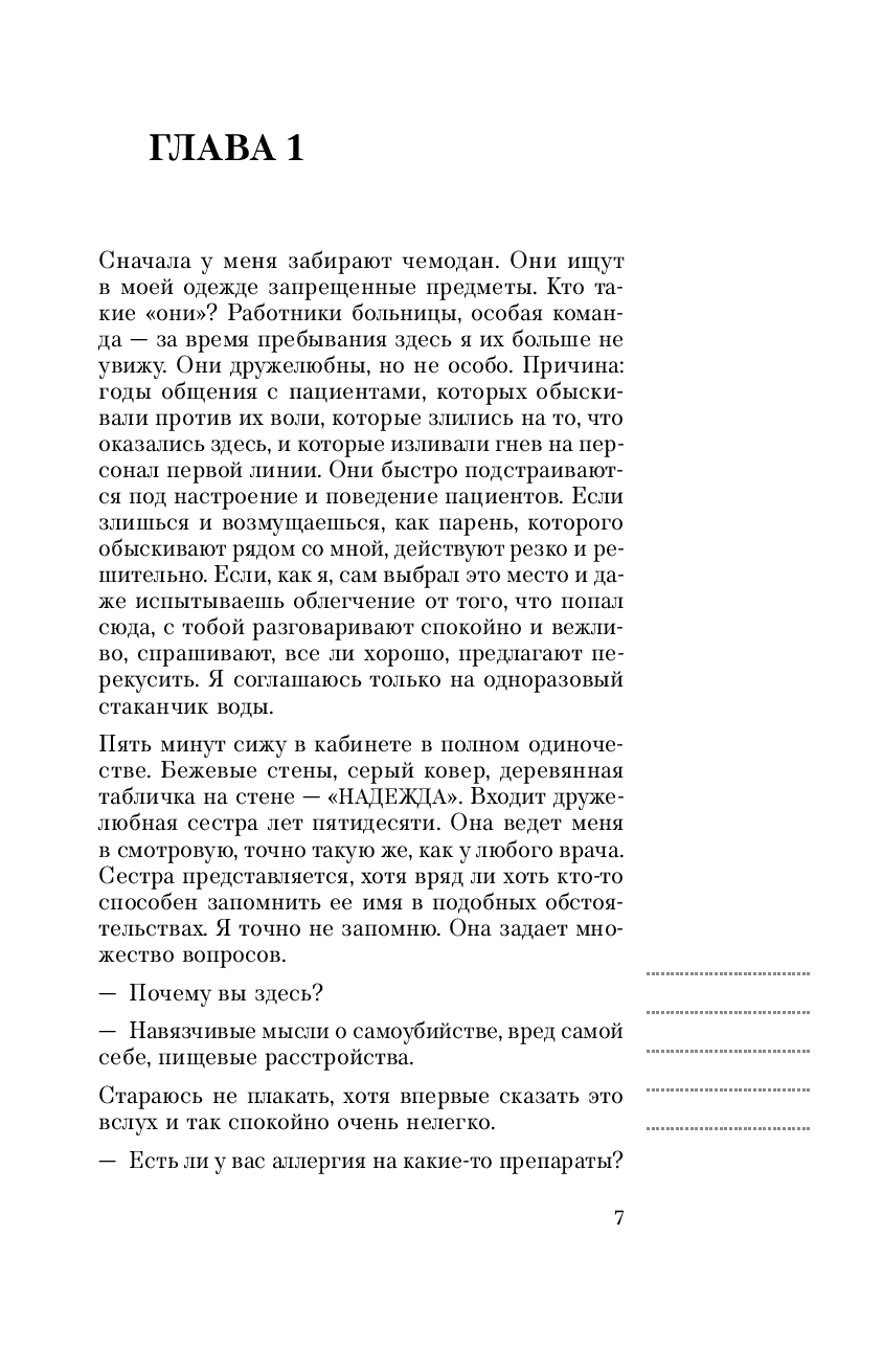 Однажды Анна сдалась под тяжестью обид. Всю жизнь ей внушали, что с ней что-то не так. Именно поэтому она, совершенно потерянная и загнанная, добровольно легла в психиатрическую клинику. Но именно там, среди таких же "истеричек" и "сумасшедших" начался ее путь к самой себе. Искренняя и живая история покажет, что за внешним спокойствием вашей подруги, коллеги, сестры может скрываться такая же тихая война с самой собой.