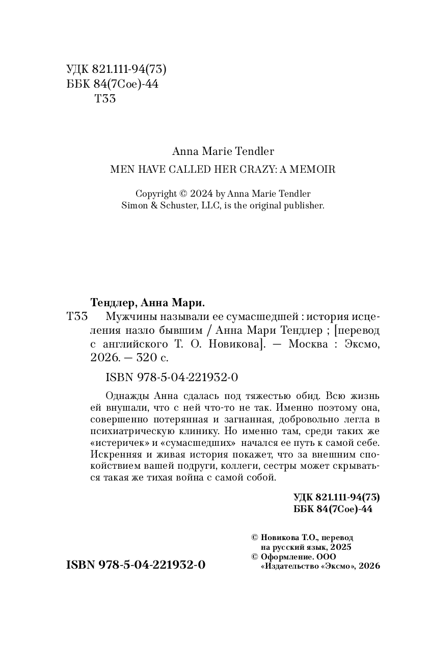 | Название в оригинале | Men Have Called Her Crazy: A Memoir |
