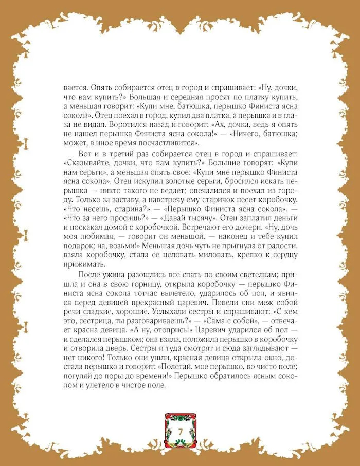 В книгу вошли сказки на самые популярные и интересные, порой шуточные, а порой таинственные и страшные сюжеты: о падчерице и злой мачехе ("Морозко", "Василиса Прекрасная", "Чернушка", "Крошечка-хаврошечка"), о чудесной жене ("Царевна-лягушка", "Поди туда – не знаю куда, принеси то – не знаю что") и чудесном муже ("Перышко Финиста Ясна Сокола"), о плутовке-лисе, волке и козе, петушке, журавле и цапле и многие другие, раскрывающие разнообразие их вариантов и деталей, отражающих живое бытование текстов в различных регионах и индивидуальность сказочника.