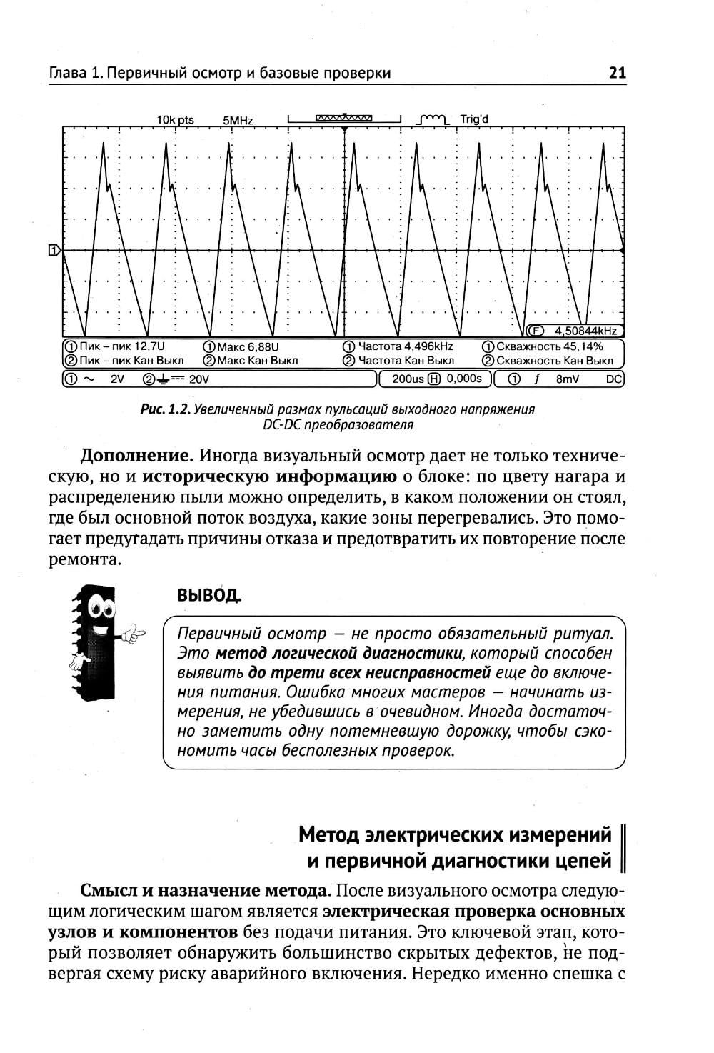 В книге приведено множество иллюстраций, наглядных схем, практических примеров и пошаговых инструкций. Благодаря этому даже начинающий радиолюбитель сможет разобраться в тонкостях диагностики и ремонта.