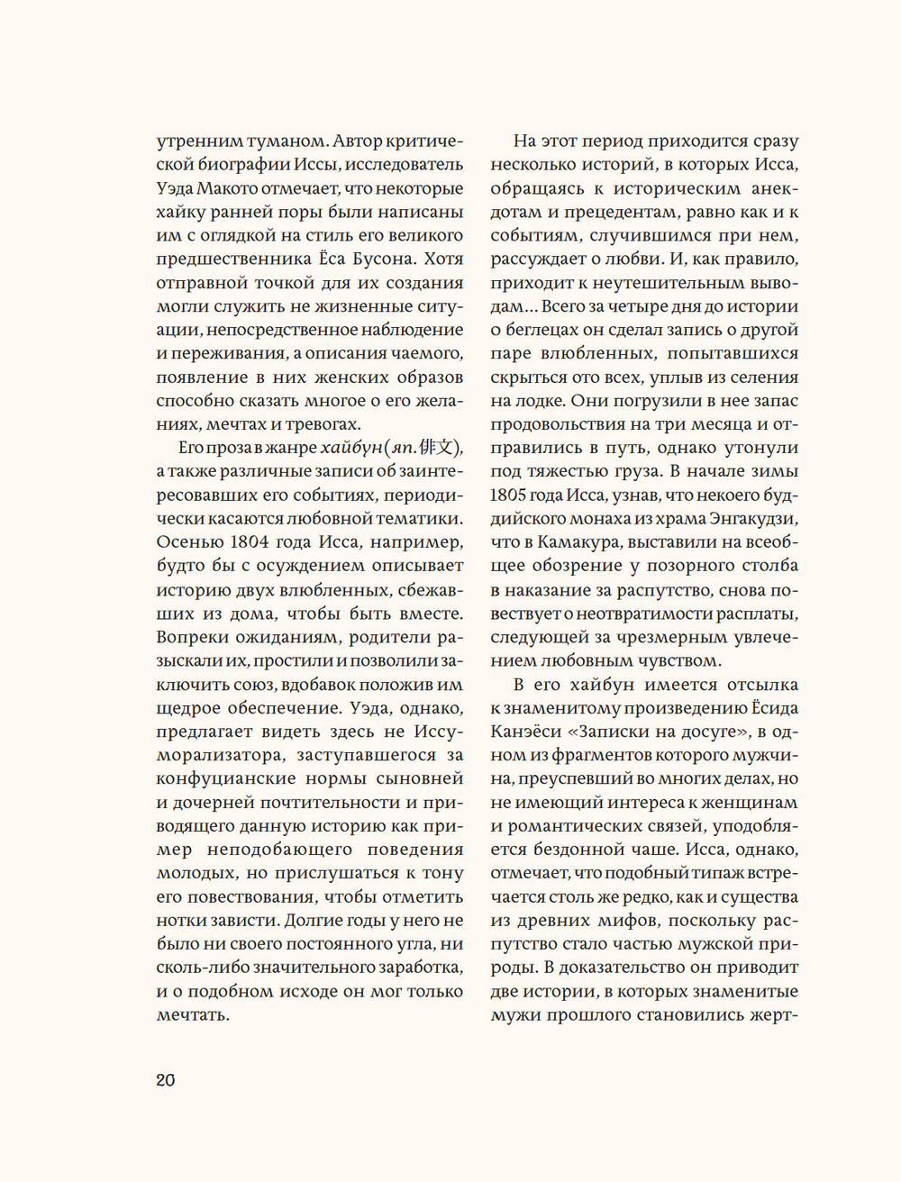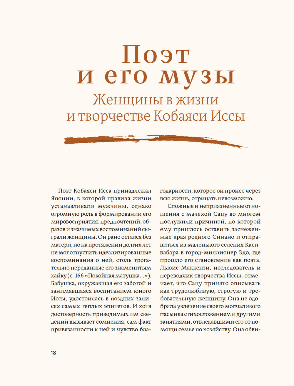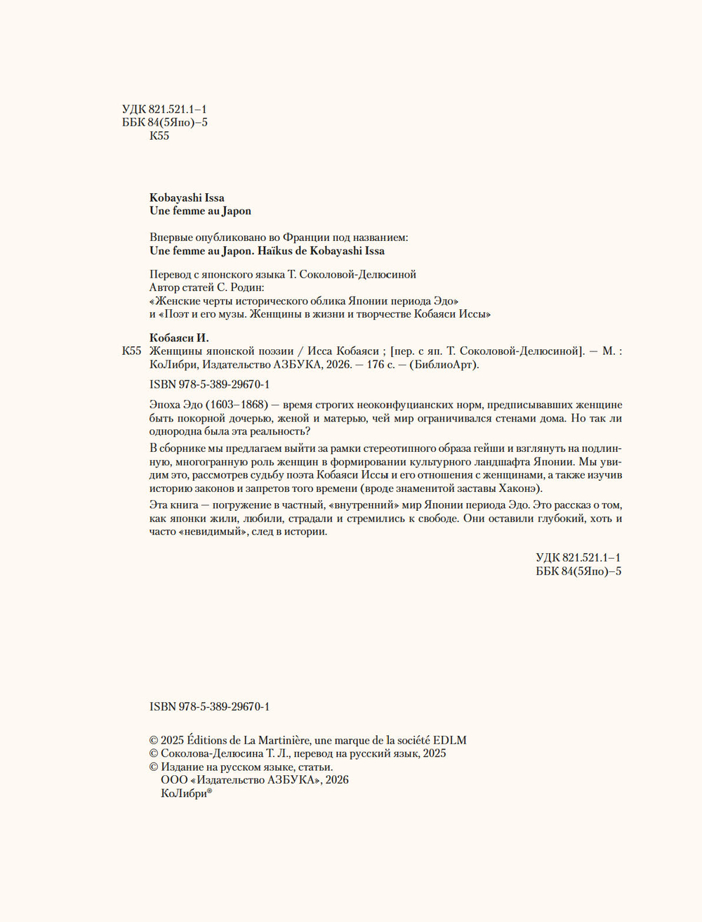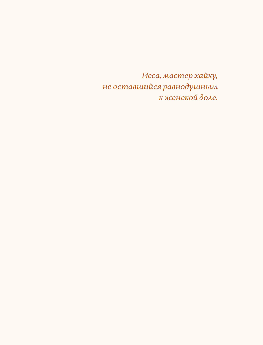 В сборнике мы предлагаем выйти за рамки стереотипного образа гейши и взглянуть на подлинную, многогранную роль женщин в формировании культурного ландшафта Японии. Мы увидим это, рассмотрев судьбу поэта Кобаяси Иссы и его отношения с женщинами, а также изучив историю законов и запретов того времени (вроде знаменитой заставы Хаконэ).
