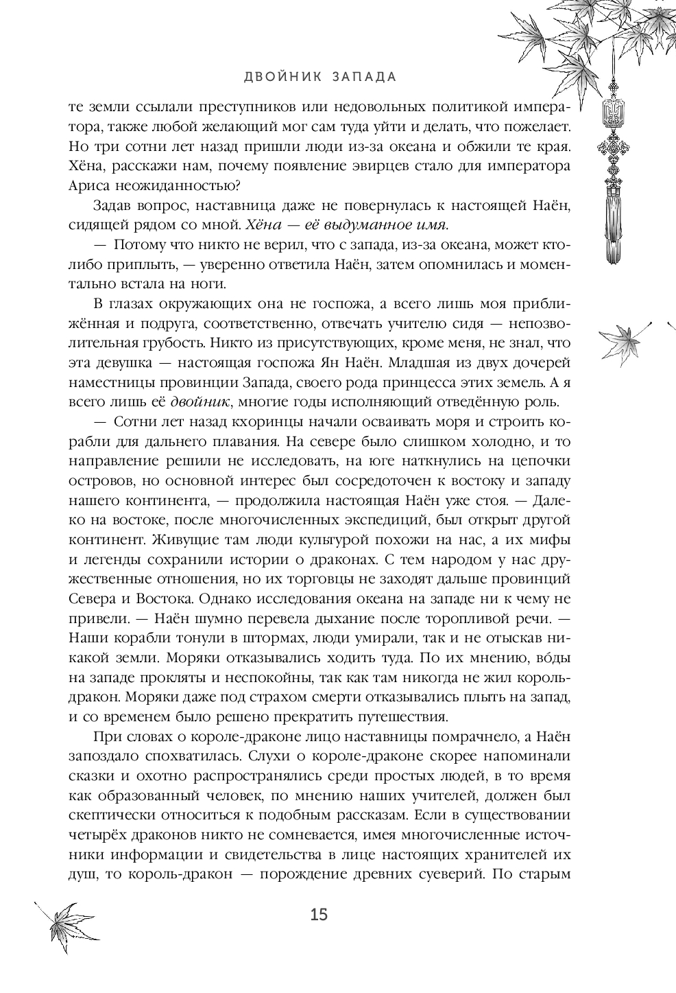 Её взяли в незнакомый дом и назвали чужим именем. Сказали, что она должна говорить, как ходить и что любить. Старый закон императора сделал её безликим двойником дочери наместницы Запада, чья единственная задача – ценой своей свободы спасти жизнь той, кто важнее, ценнее, богаче. Ей осталось всего полгода до конца притворства, до возвращения в храм Западного Дракона – единственное место, которое она может назвать домом.