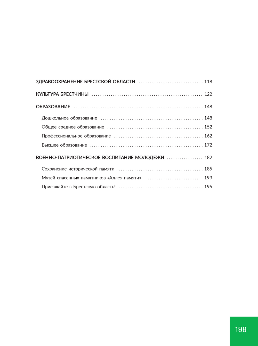 В ней представлена информация обо всех сферах жизни Брестчины: природе, истории, экономике, культуре, здравоохранении, образовании, социальной сфере, народном творчестве.