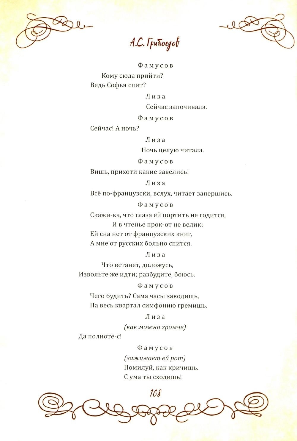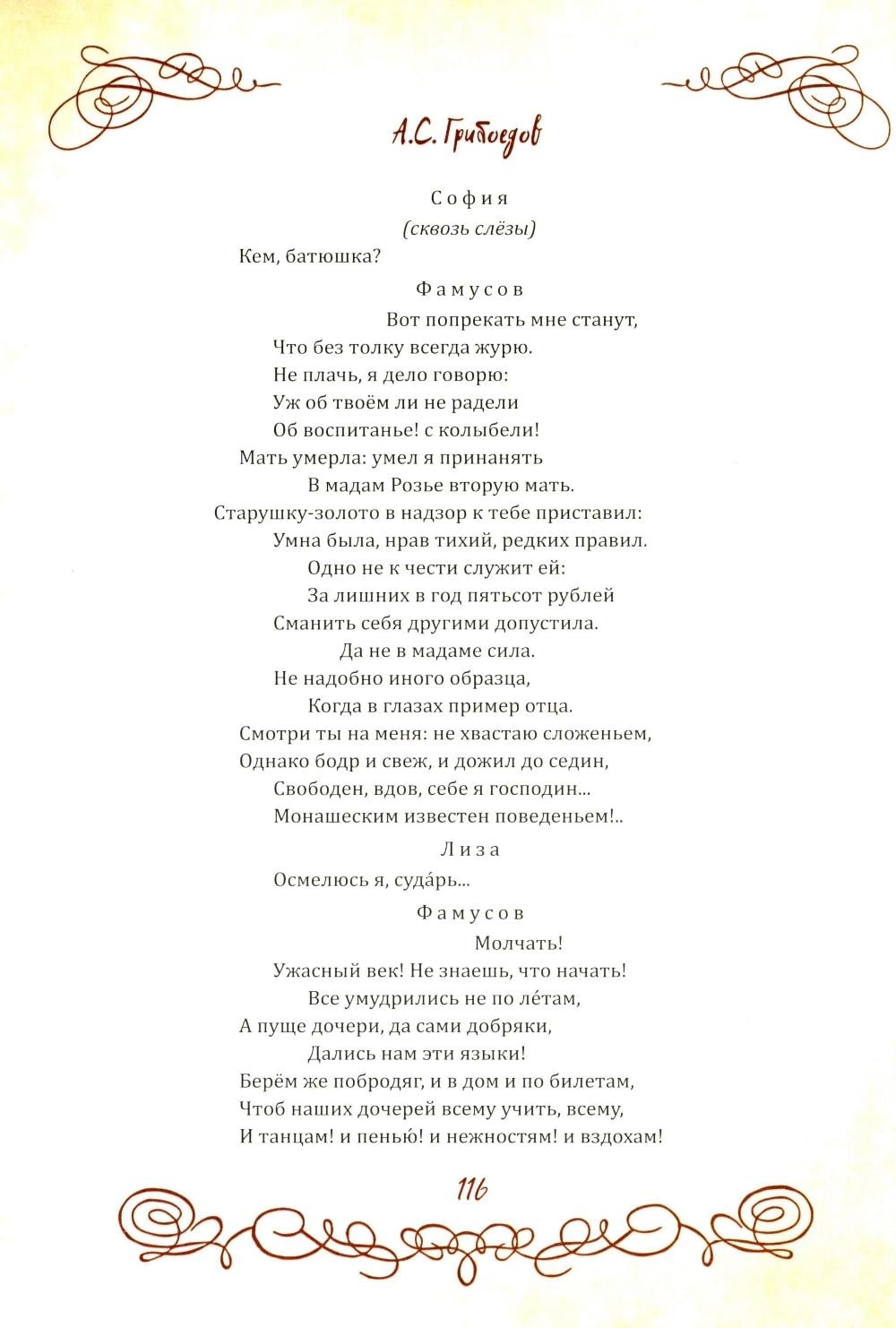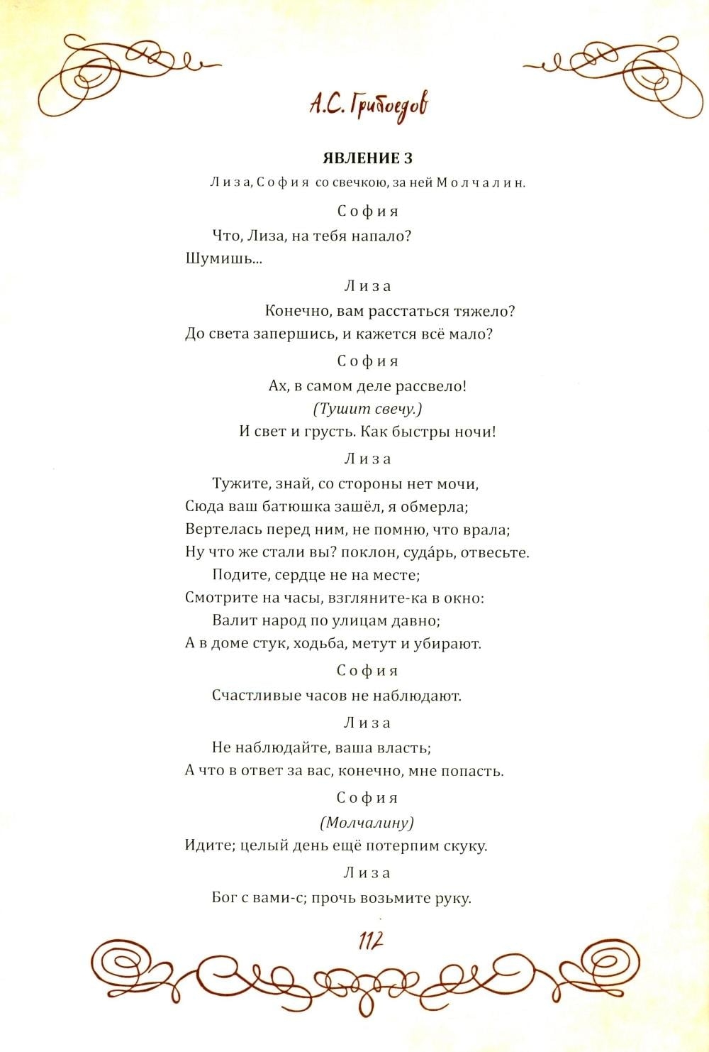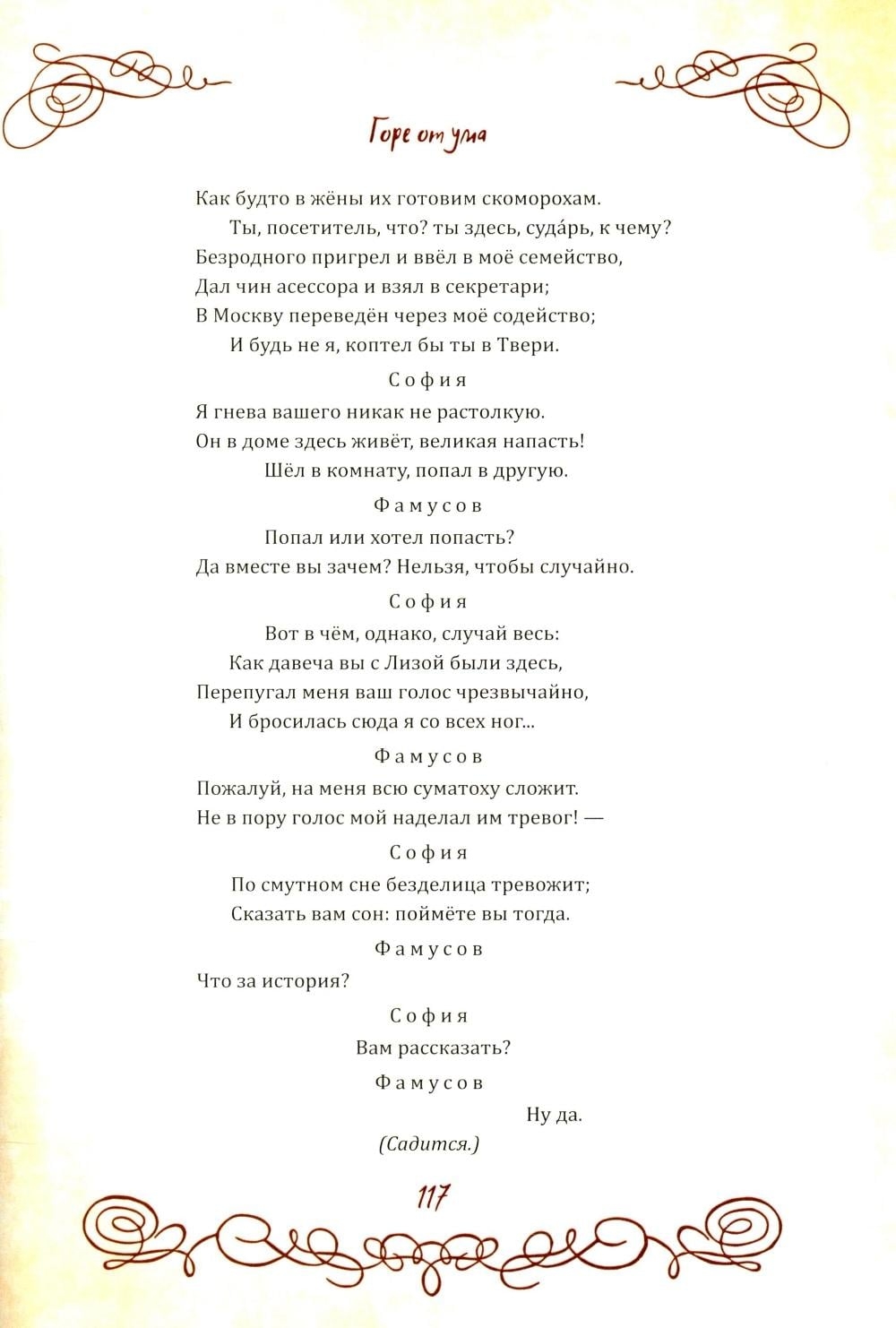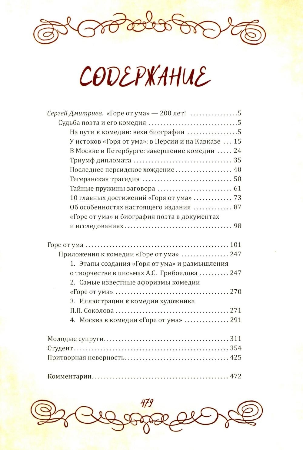 На самом деле к своему шедевру поэт шел долгие годы, и на этом пути он много экспериментировал, пытаясь искать новые пути русской драмы через создание таких произведений как, к примеру, "Молодые супруги", "Студент" и "Притворная неверность", которые также публикуются в настоящем сборнике. В-третьих, книга богато иллюстрирована не только историческими фотографиями, имеющими отношение к биографии поэта, но и полными комплектами иллюстраций к комедии, созданными тремя выдающимися художниками России: М. С. Башиловым, П. П. Соколовым и Д. Н. Кардовским.