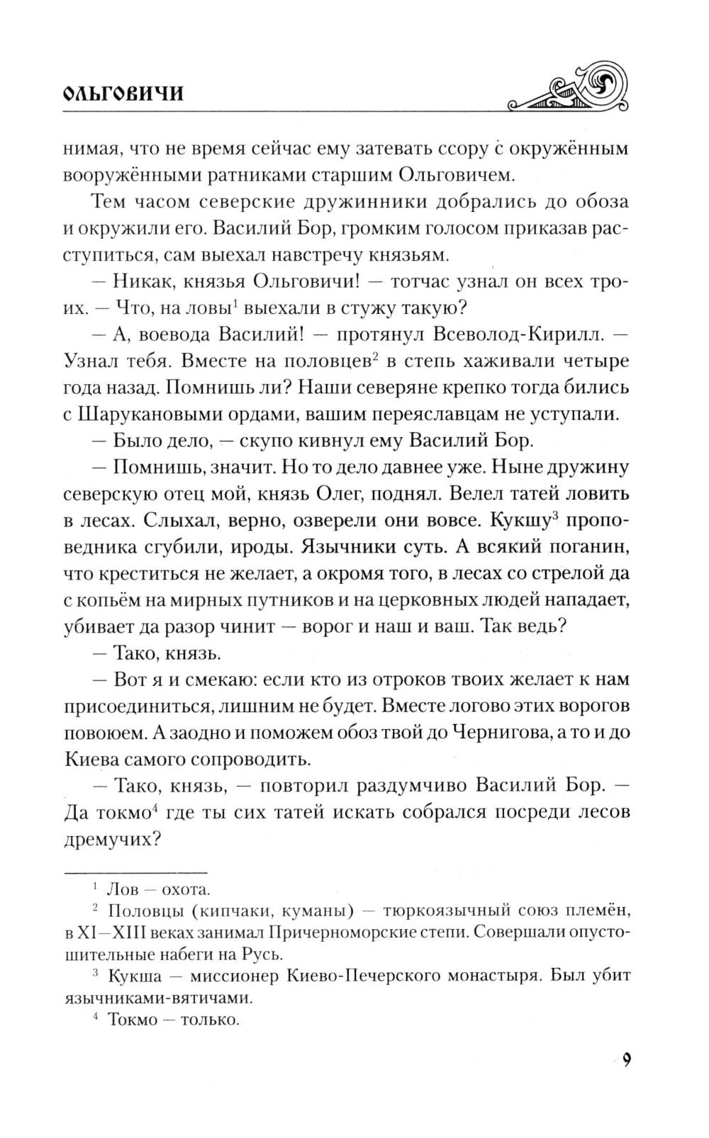 Сыновья вздорного князя – братья Ольговичи – покорны Мономаху по той же причине: видят, что на его стороне сила. Но не вечен Мономах, рано или поздно уйдёт в мир иной. А старший из братьев Ольговичей – Всеволод-Кирилл – только этого и ждёт. Ведь тогда никто не помешает проявить вздорный характер, доставшийся от отца в наследство.