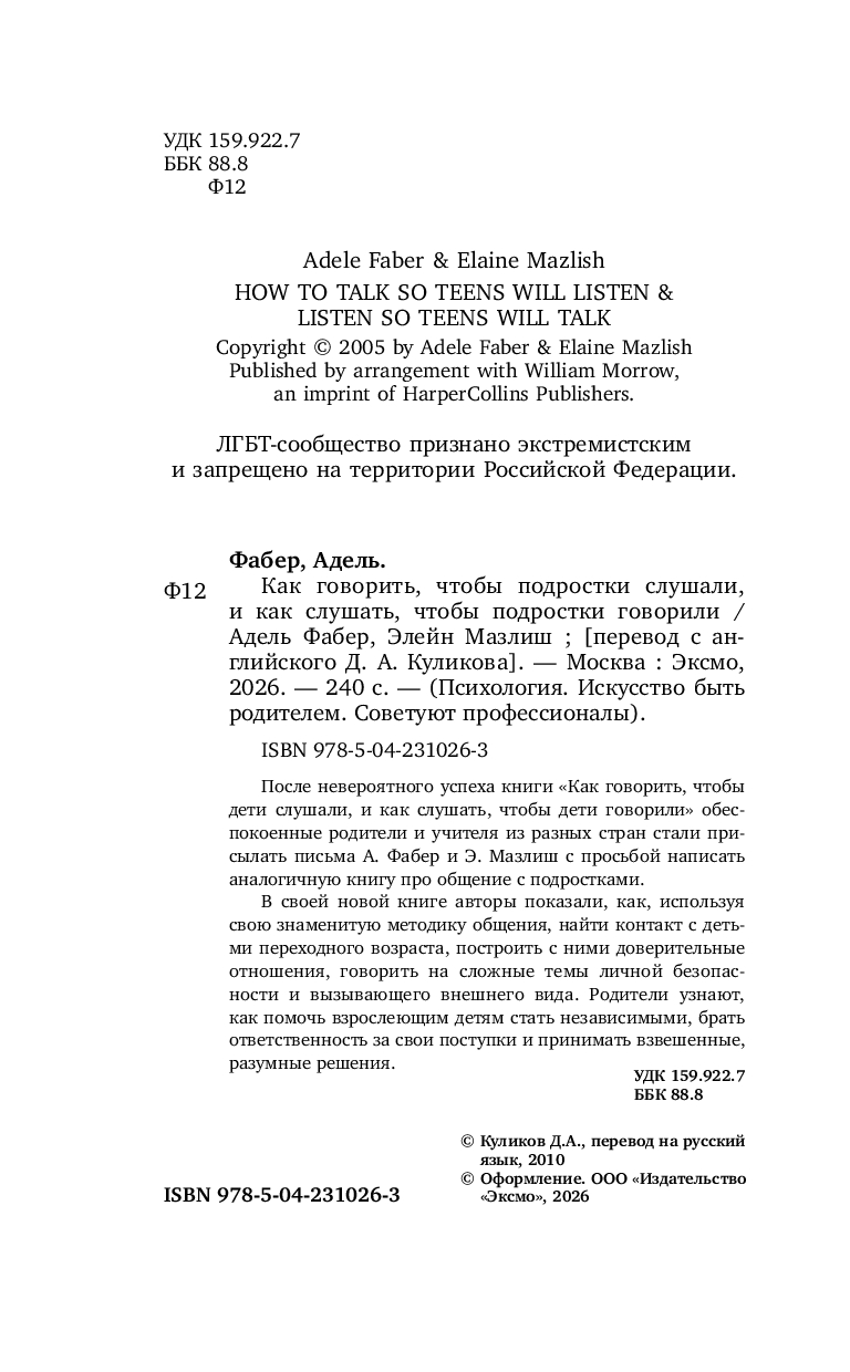 | Название в оригинале | How to talk so teens will listen and listen so teens will talk |