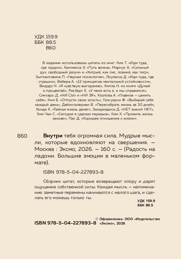 Сборник цитат, которые возвращают опору и дарят ощущение собственной силы. Каждая мысль – напоминание: заметные перемены начинаются с малого шага, и сделать его можешь только ты.