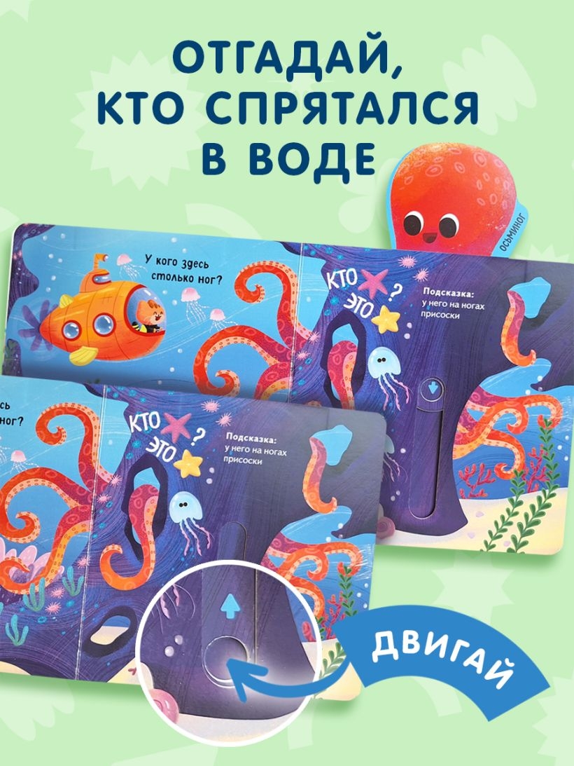 Кто там резвится в волнах? А кто притаился в тёмной подводной пещере? Это акула или осьминог? Скорее открывайте эту книжку с задвижками! Найдите всех-всех морских обитателей на красочных интерактивных разворотах.