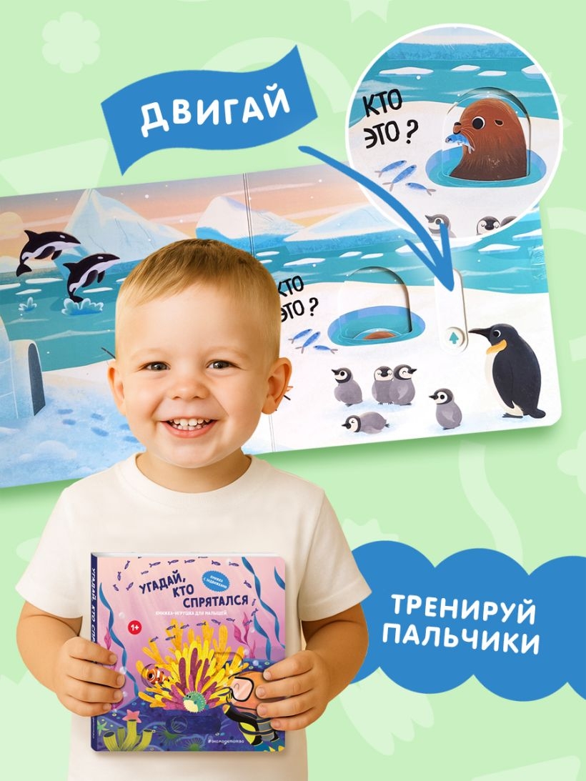 Увлекательная книжка-игрушка с двигалками на каждом развороте. Тренируем пальчики, развиваем фантазию и мелкую моторику! Игра начинается прямо с обложки, ведь там находится первая подвижная деталь!