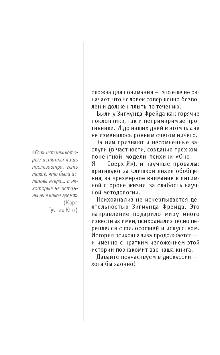 Наши поступки, решения и желания имеют свои причины и последствия – иногда они лежат на поверхности, а иногда запрятаны так глубоко, что разобраться самостоятельно бывает не под силу. В этой книге речь пойдет о самом загадочном и неоднозначном направлении психологии – психоанализе. Согласно этой теории наше поведение определяется иррациональными и неосознанными влечениями, которые копятся в нас с самого детства и могут стать причиной психологических трудностей. Впервые сформулированный как отдельное явление австрийским психиатром и психологом Зигмундом Фрейдом, психоанализ до сих пор вызывает жаркие споры. Об истории этого метода, его прошлом и настоящем, основных идеях и способах применения вы узнаете из данной книги.