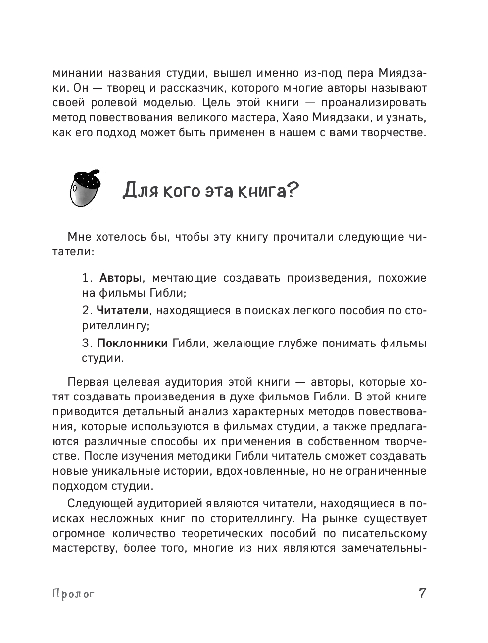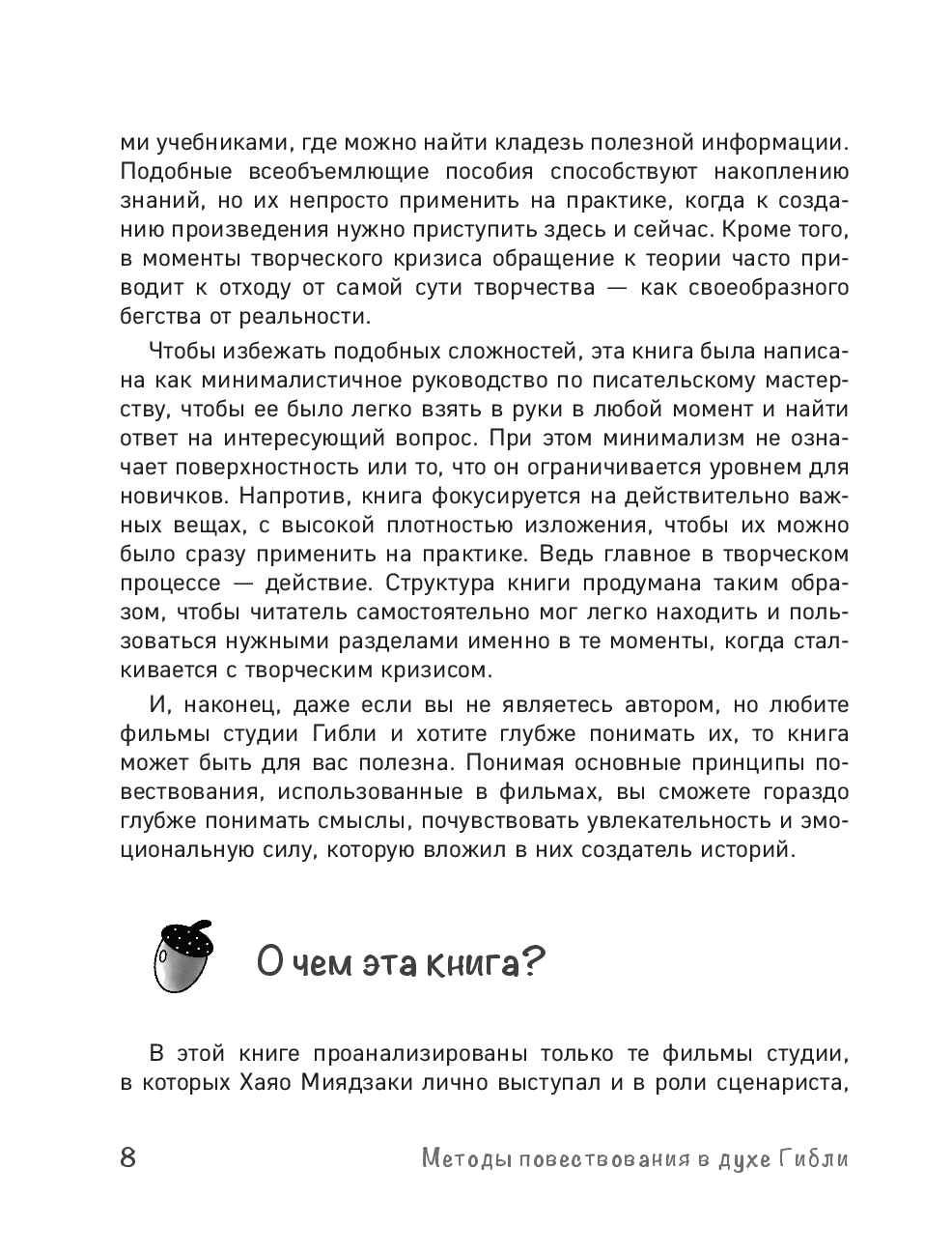 Эта книга – практический инструмент, который поможет вам посмотреть на искусство сторителлинга сквозь призму Хаяо Миядзаки, не теряя при этом свой голос. Автор подробно разбирает этапы формирования замысла, от поиска идеи до создания убедительных персонажей и красочной проработанной вселенной. Каждый раздел сопровождается кратким резюме и вопросами для практики, что позволяет сразу применить на практике освоенные приемы.