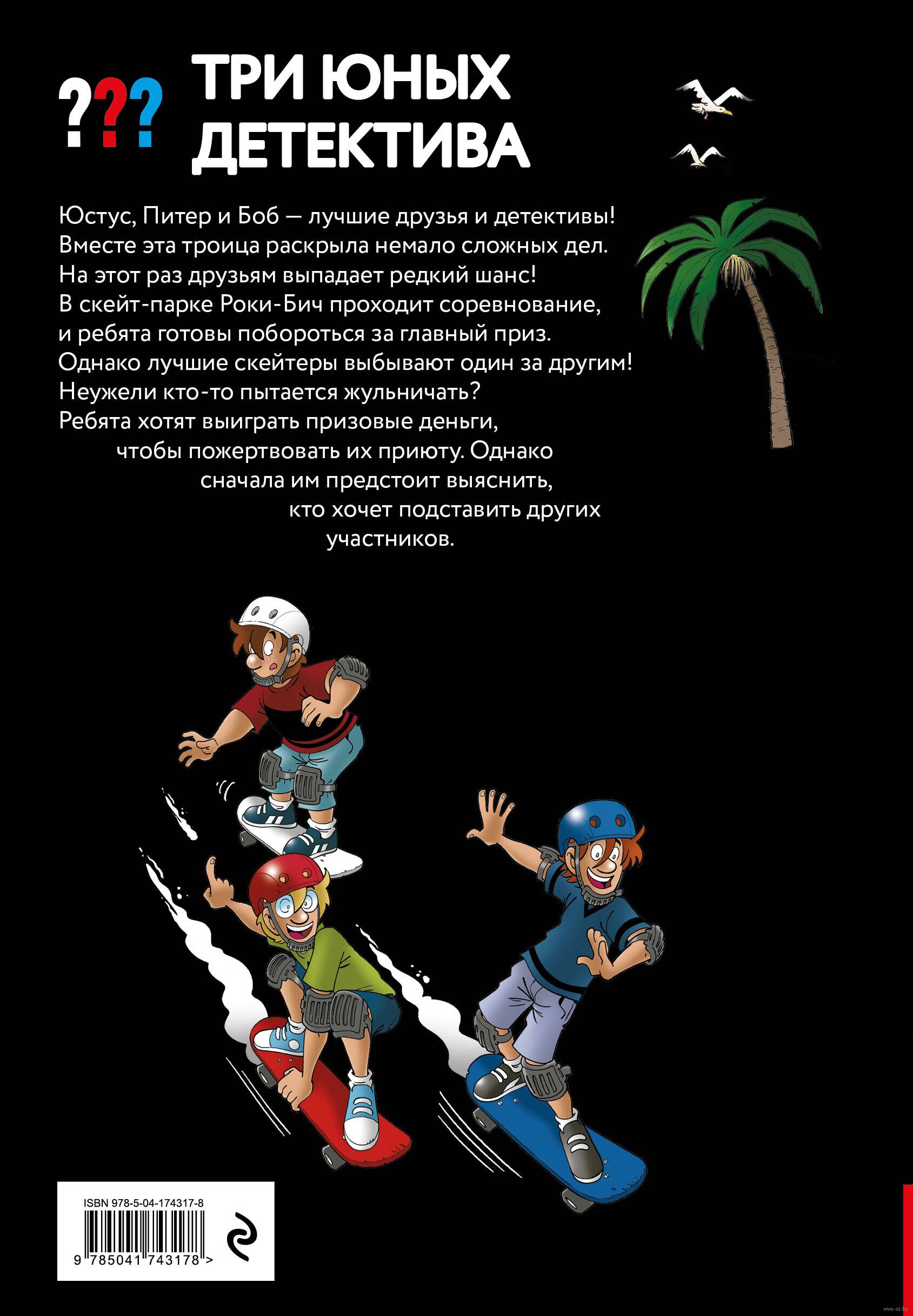 Юстус, Питер и Боб – лучшие друзья и детективы! Вместе эта троица раскрыла немало сложных дел. На этот раз друзьям выпадает редкий шанс! В скейт-парке Роки-Бич проходит соревнование, и ребята готовы побороться за главный приз. Однако лучшие скейтеры выбывают один за другим! Неужели кто-то пытается жульничать? Ребята попытаются выиграть призовые деньги, чтобы пожертвовать их приюту. Однако сначала им предстоит выяснить, кто хочет подставить других участников.