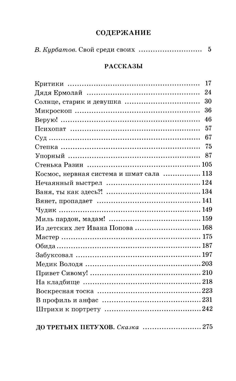 В сборник известного писателя, сценариста, режиссера и актера Василия Макаровича Шукшина вошли философская сказка про Ивана-дурака, который ходил за тридевять земель набираться ума-разума, "До третьих петухов" и более двадцати рассказов о русской деревне, тяжелой судьбе и нелегком быте сельчан: "Дядя Ермолай", "Верую!", "Упорный", "Забуксовал" и другие.