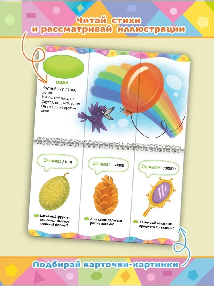 Благодаря сортировке форм ребенок учится различать фигуры, что помогает подготовиться к дальнейшему обучению. Многоразовая основа делает развивайку удобной для регулярных игр. Твердые страницы гарантируют долгий срок службы, а яркие иллюстрации делают материал понятным и привлекательным.
