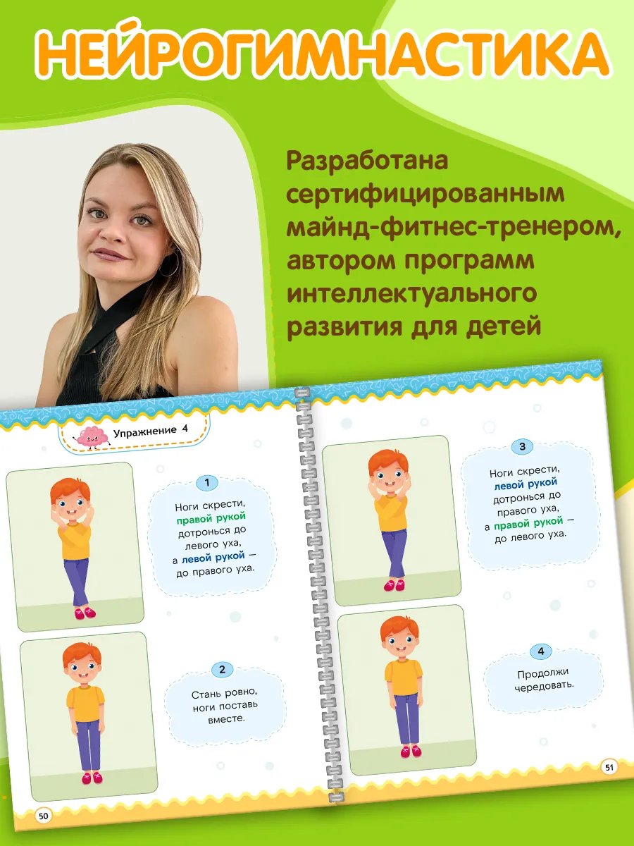 Нейрогимнастика для малышей – это увлекательная книга, которая станет отличным помощником для развития вашего ребенка! Многоразовый нейротренажер предназначен для дошкольников и школьников от 5 лет. Нейрогимнастика составлена профессиональным педагогом. Обучающая книга предлагает простой и доступный комплекс упражнений в игровой форме, которые развивают память и внимание. Упражнения помогают активировать оба полушария, улучшая логическое мышление и координацию.